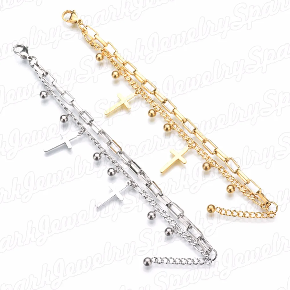 Название: Очаровательные двухслойные браслеты из нержавеющей стали для женщин, регулируемый золотой браслет с подвеской, Религиозные ювелирные изделия