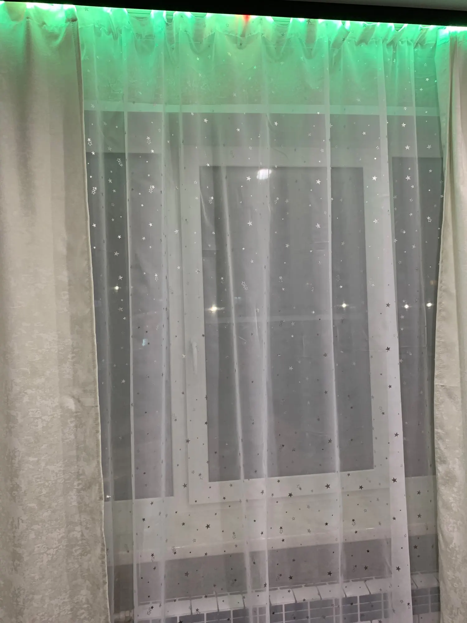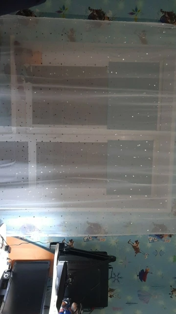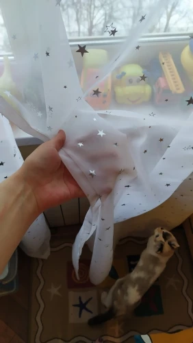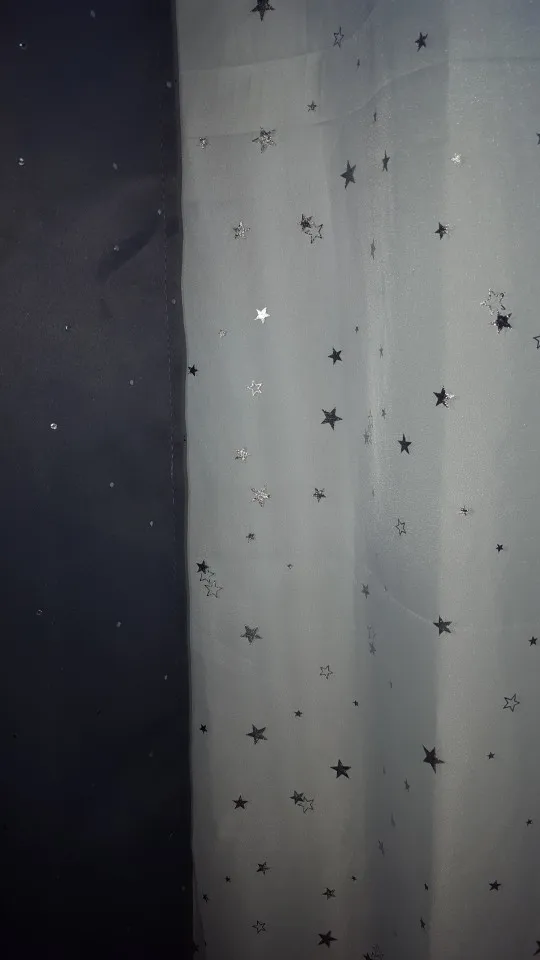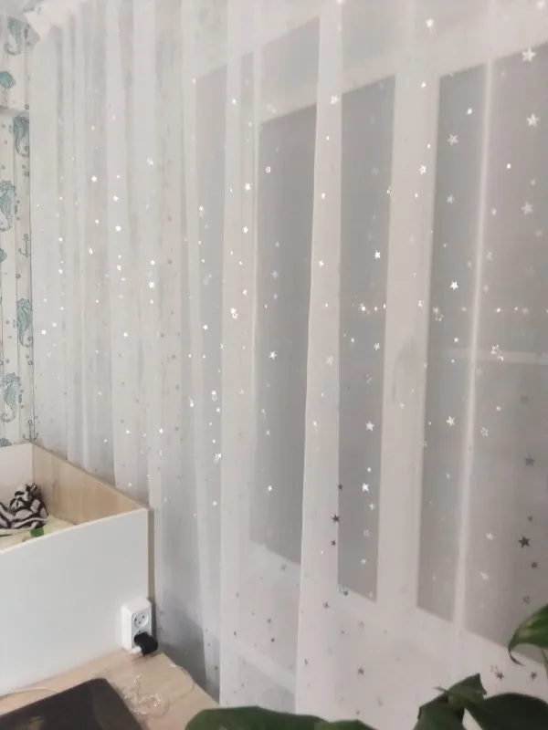 Отличный тюль, пришло все как заказывала, спасибо за быструю доставку и оперативную сборку товара. Звёзды на тюле при определенном освещении красиво сияют.