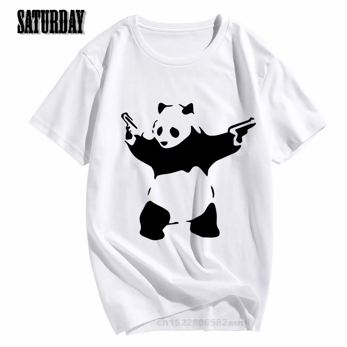 Футболка унисекс, с коротким рукавом и круглым вырезом, с принтом панды, пистолетов, футболка Hipster