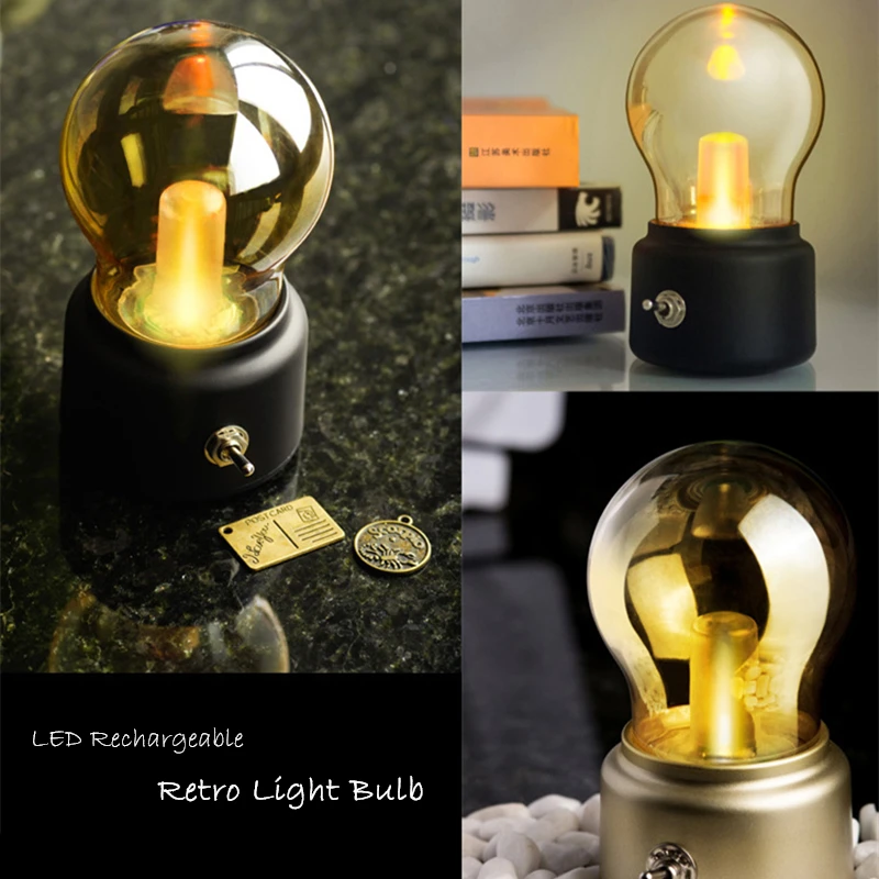 CHICLITS винтажная Светодиодная лампа ночник Ретро USB перезаряжаемая лампа светильник льник s портативный прикроватный домашний библиотечный Бар Декор подарок