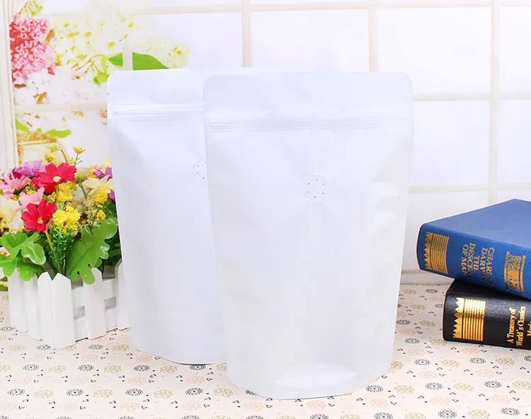 Bag StyleWhite Stand-up Aluminum Foil Coffee Valve Ziplock bag