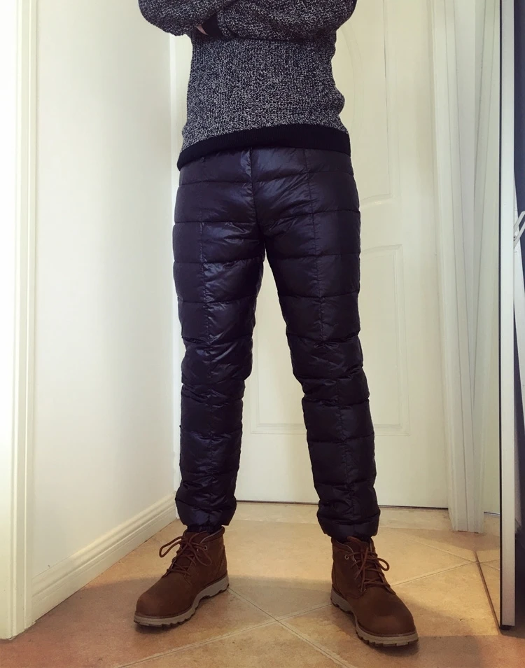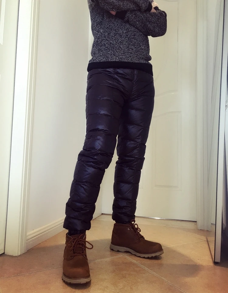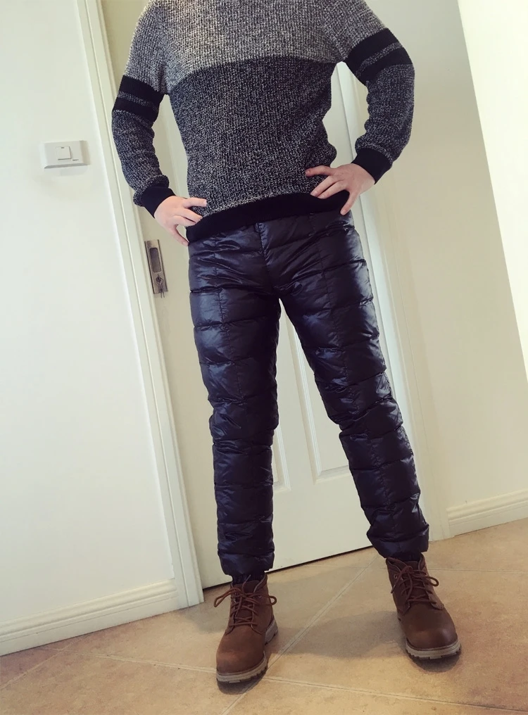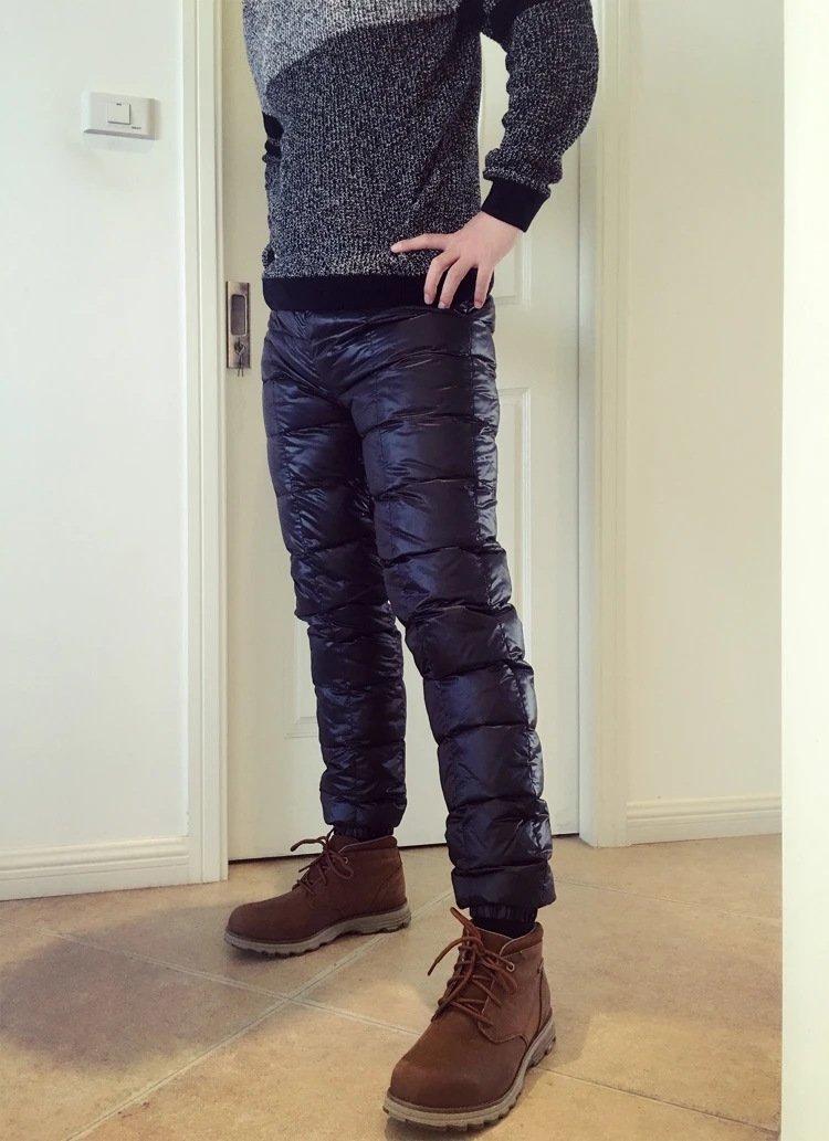 Зимние мужские брюки на пуху с высокой талией, большие размеры, толстые белые брюки на утином пуху, мужские черные тонкие теплые походные брюки