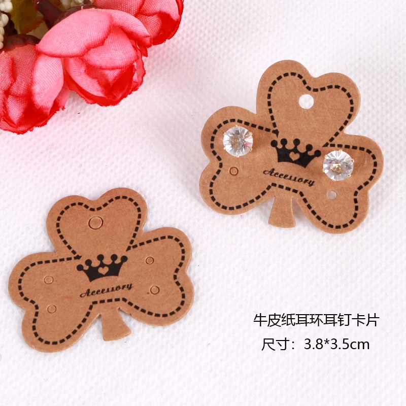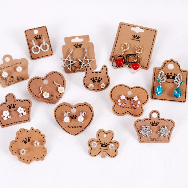 100 шт.лот серьги из крафт-бумаги, упаковка и демонстрация ювелирных изделий, кошка, сердце, корона, серьги-гвоздики, бирки для ювелирных магазинов, логотип на заказ