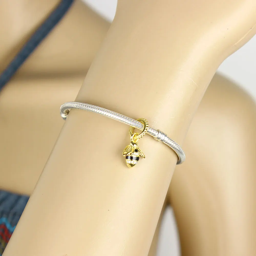 2018 оригинальный браслет с подвесками, золотые бусины в виде пчелы, ожерелье, серебро 925 пробы, ювелирные изделия, браслеты сделай сам