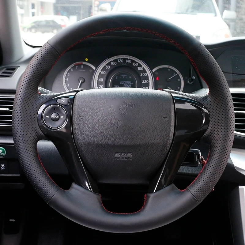 GNUPME черного цвета из высококачественной натуральной кожи; Ручная прошивка автомобиля рулевое колесо Крышка для Honda Accord 7 2002-2007 (с 3 спицами, ударных)