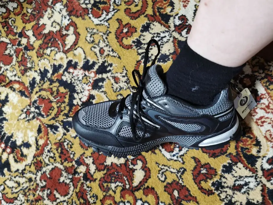 Великолепные кроссовки. Легкие удобные, толстая мягкая стелька. Форма подошвы такая, что нога как бы сама перекатывается с пятки на носок. Ходить одно удовольствие. На свой 42,5 заказал размер 9. Подошли идеально. Очень доволен покупкой. Доставка до Питера 20 дней в постамат Пятерочки.