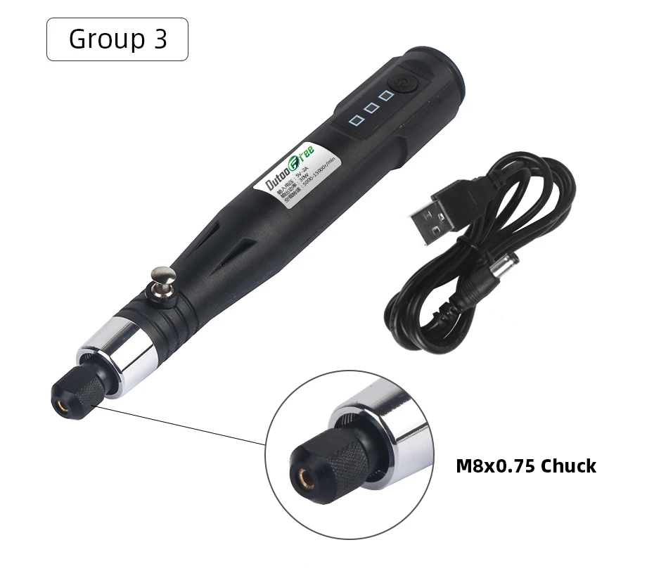 очень слабый мотор, обороты падают при малейшем нажиме покупал в дополнение к дремелю, т.к. думал, что аккумуляторный 7равер, а он без батареи пауэрбэнк подойдет не 4аждый, а только очень мощный, отдающий минимум 1 ампер (в описании указано 2 ампера)