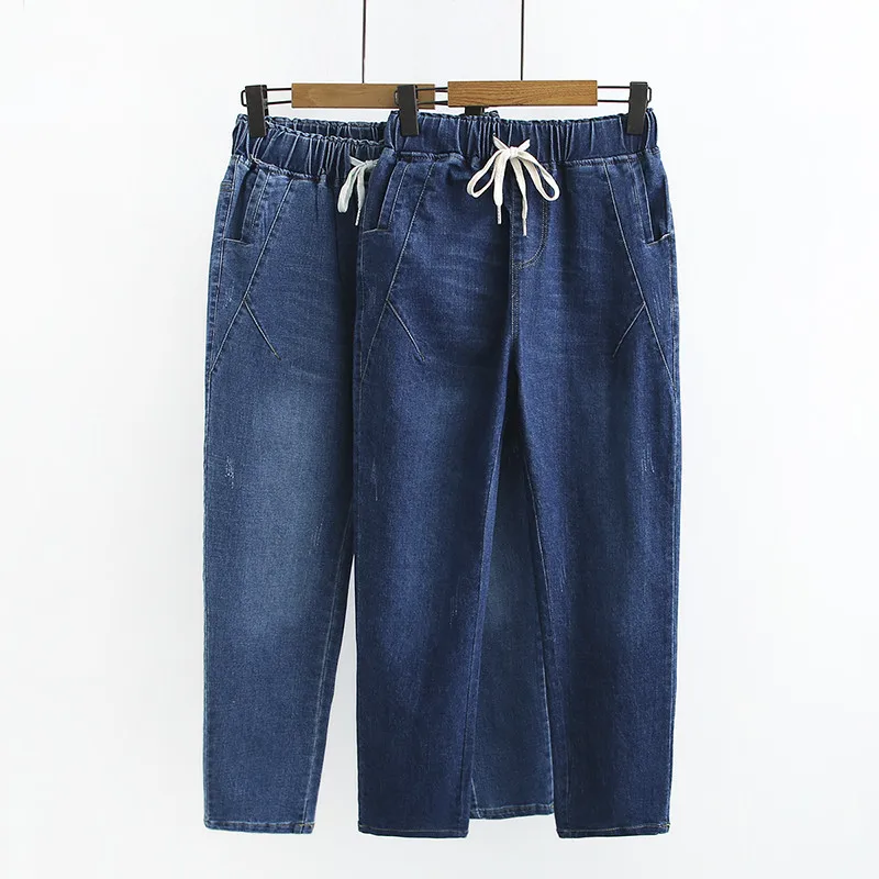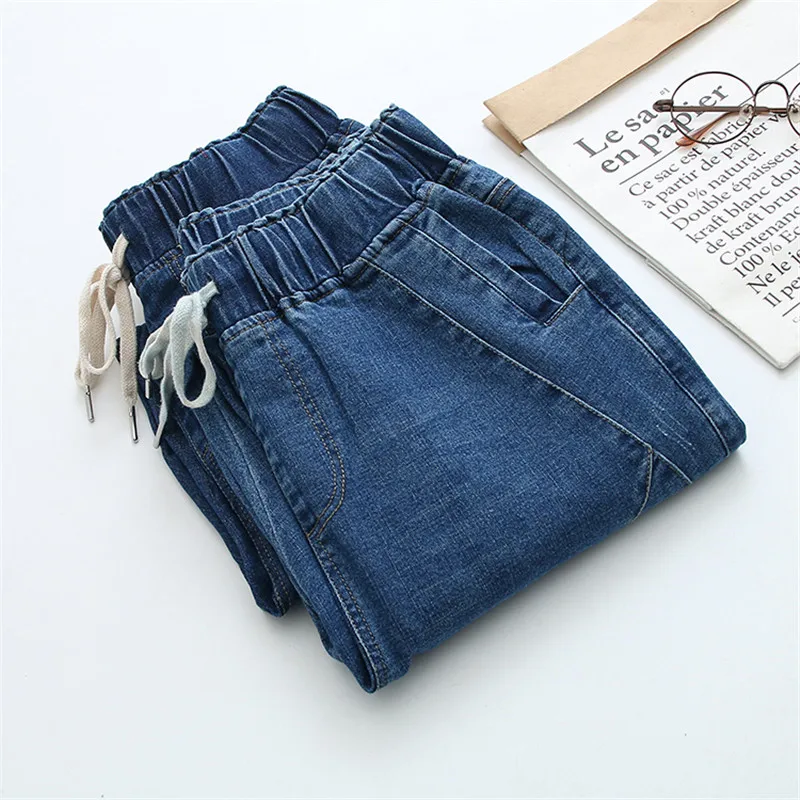Женские джинсы, свободные шаровары из мытой джинсовой ткани, с эластичной резинкой на талии, большие размеры, размера плюс, 5XL, Осень-зима, 2020