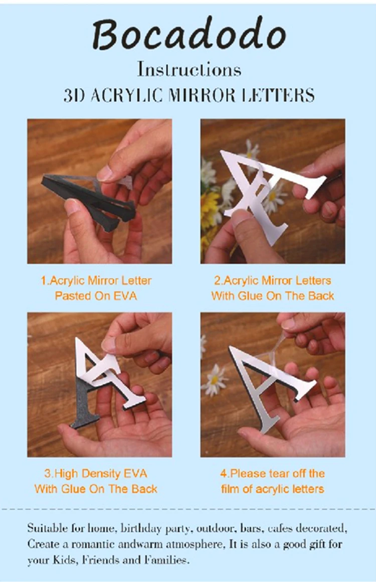 Bocadodo DIY серебряные акриловые буквы, 26 Английских отдельно стоящих алфавитных огней, украшения для свадебной вечеринки, комнаты, ремесла