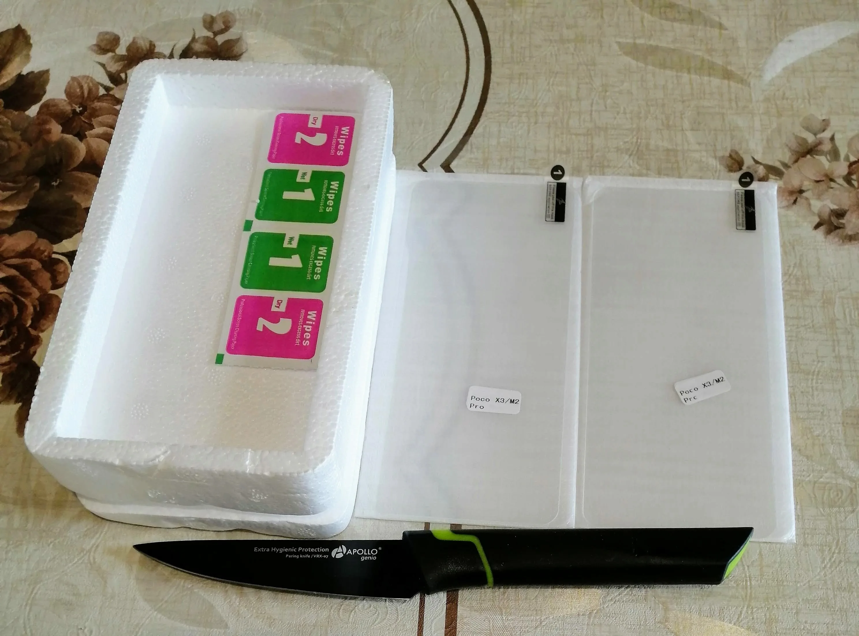 Заказала 17.10.2020, когда пришло на почту в Новосибирск, непонятно, уведомления не было, чисто поинтересовалась, ну а вдруг! И оказалось да, есть! Отправление неотслеживаемое! По Китаю худо-бедно ещё было. Стёкла упакованы хорошо, всё целое. Но! Размер как-то не наш... По краям очень много зазора, миллиметра по 2 со всех сторон точно будет, даже с учётом бортика чехла. Стекло монолитное, никаких вырезов и отверстий. На шильдике написано POCO X3/M2Pro. В общем, короткое и узкое. Не уверена, что буду клеить, а взяла 2 шт. Для тех, кто пользуется жестами, не пойдёт точно. На фото специально сдвинула его в один угол, чтобы было видно, сколько ещё остаётся до краёв экрана. Уже второй комплект неудачных стёкол приезжает.