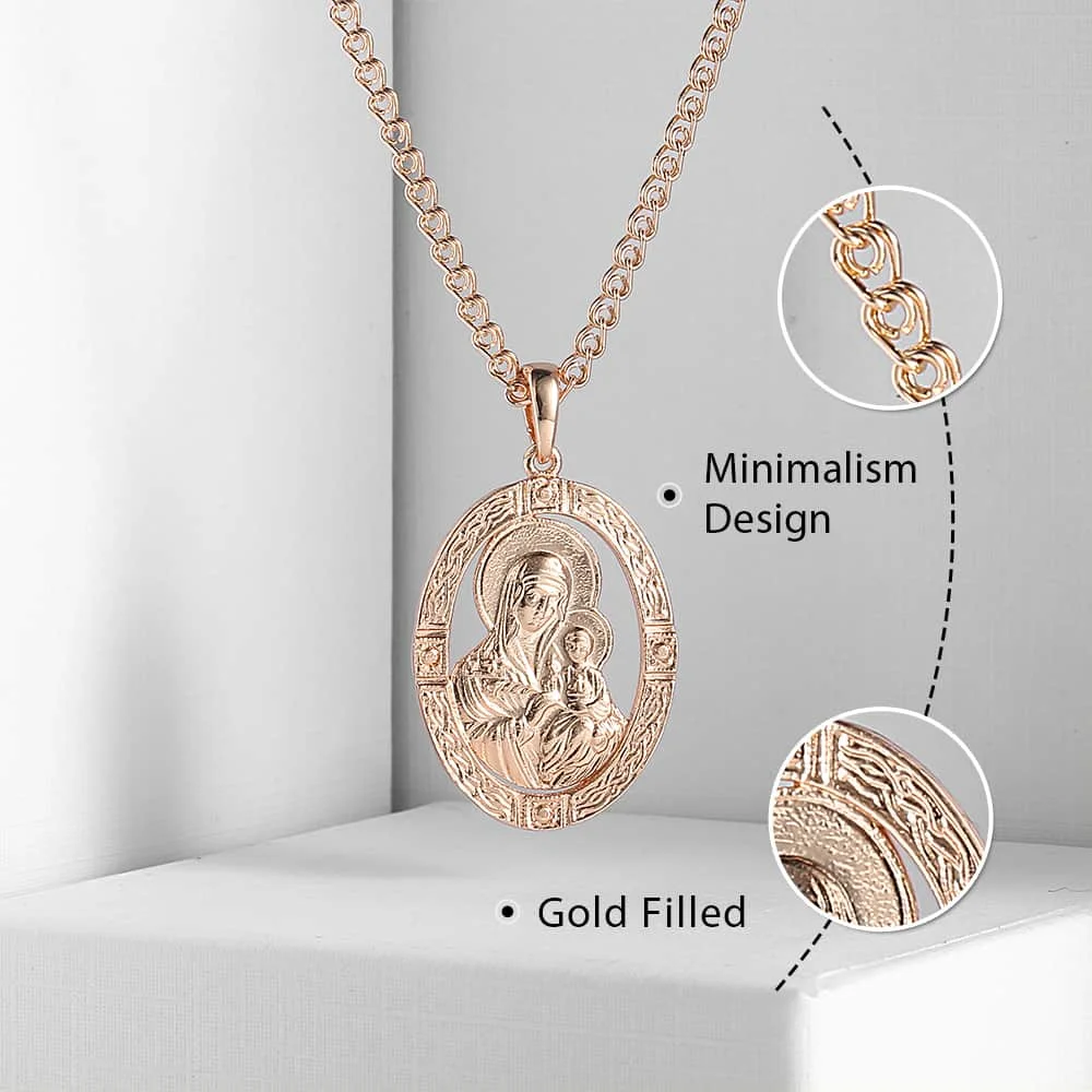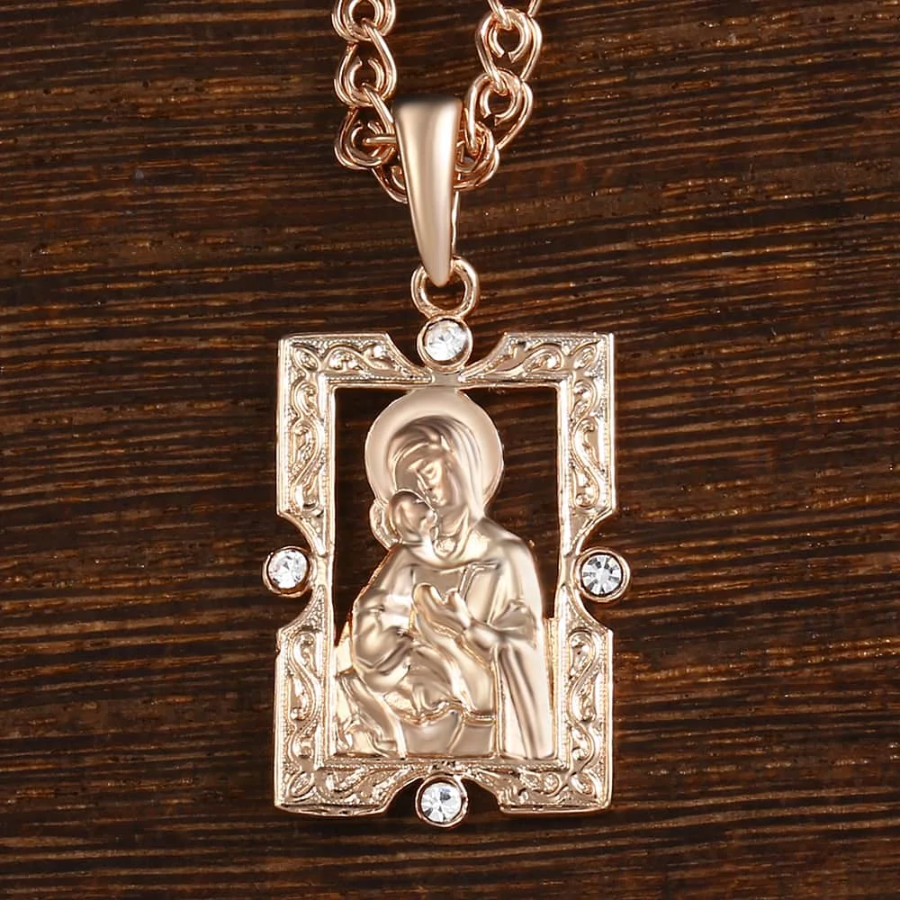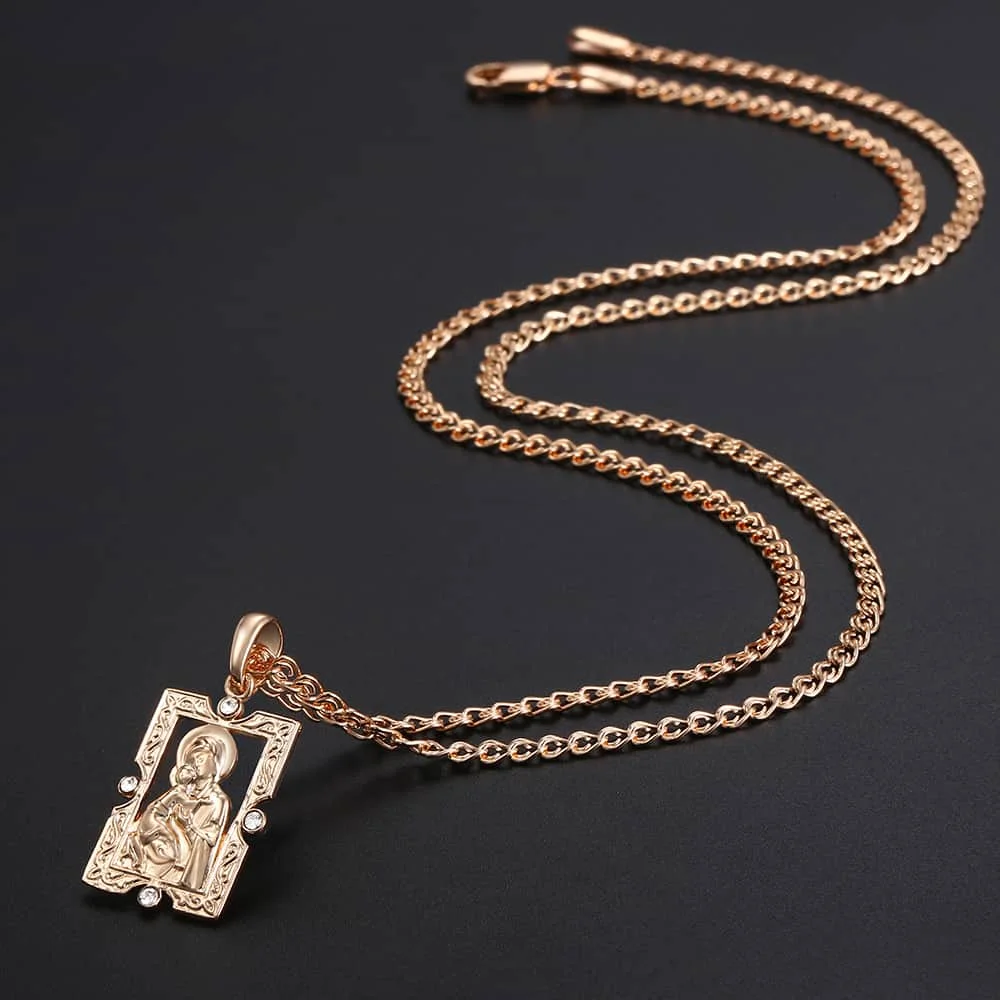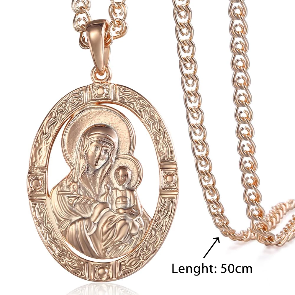 ЖенскоеМужское ожерелье с подвеской в виде креста, розовое золото 585 пробы, с изображением девы Марии и Иисуса, христианская бижутерия, модный подарок для женщин HGP194