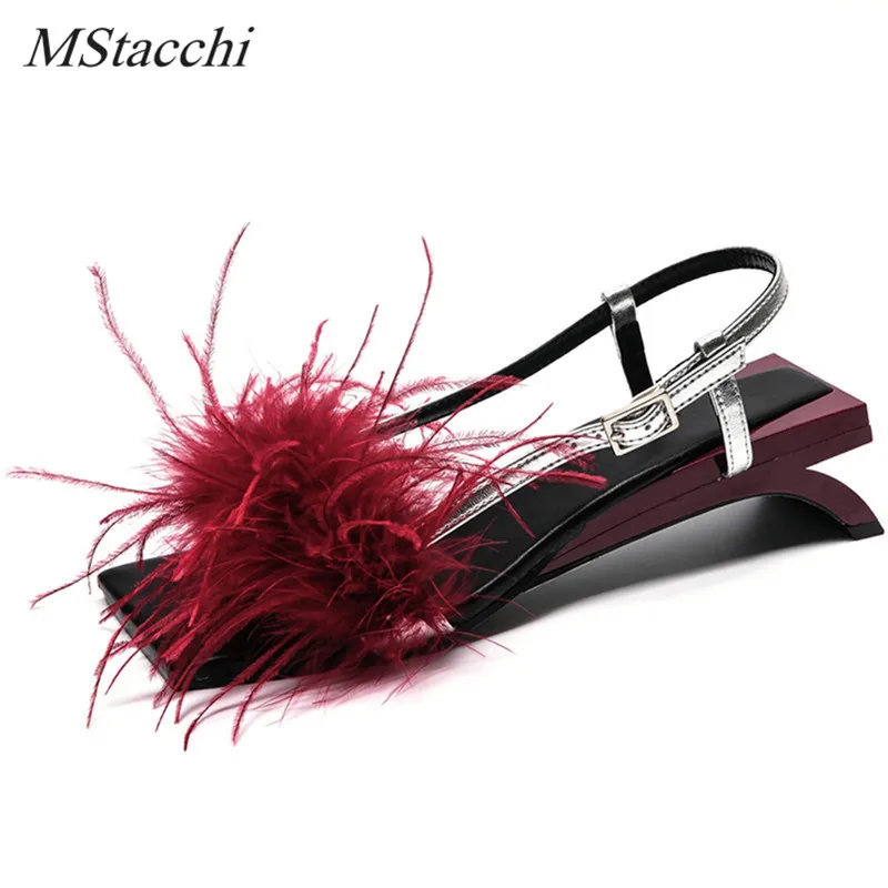 Женские босоножки Mstacchi, летние туфли с ремешком типа A, странный каблук, настоящие искусственные украшения, каблук инопланетянина, женские вечерние туфли