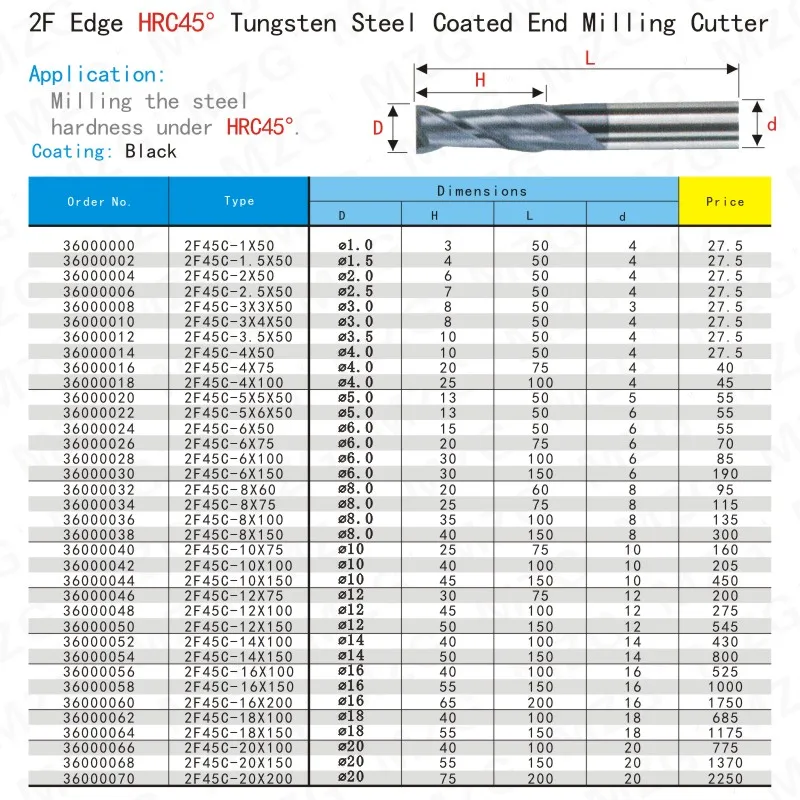 Твердосплавные концевые фрезы MOSASK из вольфрамовой стали с 2 канавками, HRC45, 2 мм, 3 мм, 4 мм, 6 мм