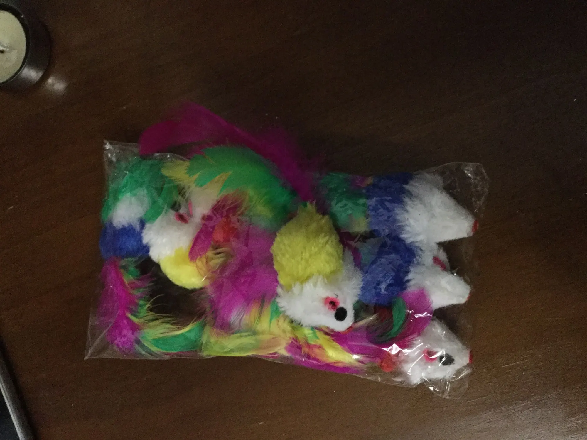 Заказано 2021-01-12, получено 2021-01-29. Заказ пришёл в совместной посылке. Очень удобно, что все вместе. Мышки мелкие, длиной с пол пальца. Котёнку в самый раз. Внутри что-то шуршит. В принципе соответствует описанию. Жаль, что всего 1 красная, 2 синие, все остальные, к сожалению, зелёные (бесячий цвет) - но так-то ассортимент... И жаль, что цвет выбрать нельзя. Здоровья вам и вашим любимцам!