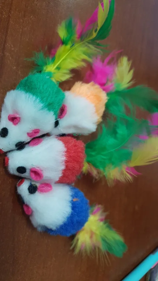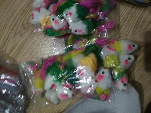 супер быстрая доставка в распродажу 11.11 в Калининград 2 недели. спасибо большое продавцу. кися рада безумна ,это её любимые мышки. рекомендую товар покупали за 103р. в мышках шумящие шарики, они пушистые и хвосты с перьями. рекомендую