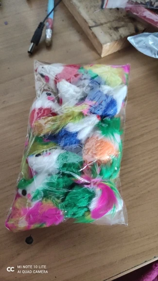 Прикольные игрушки для кошек (на мой взгляд лучше для котят, тк моим хвостатым, трудно в зубах их таскать). Жаль, что цвета мышей попались, 5 красных и 5 зелёных, хотя в описание я посмотрел что 5 разных расцветок могут мышки быть... Однако, кошки довольны, и им нравятся играть с мышками. Посылка до Перми за 16 дней.