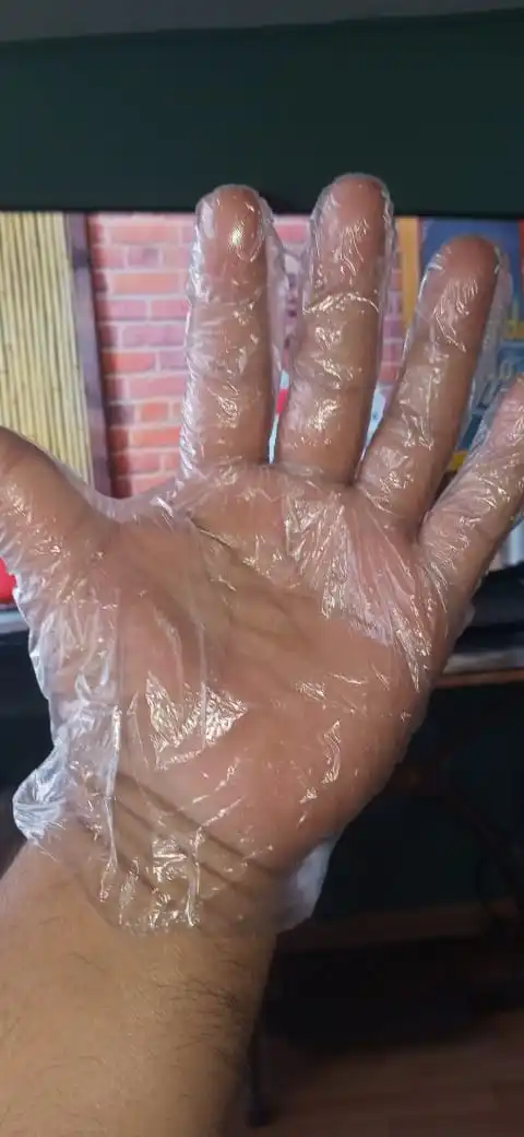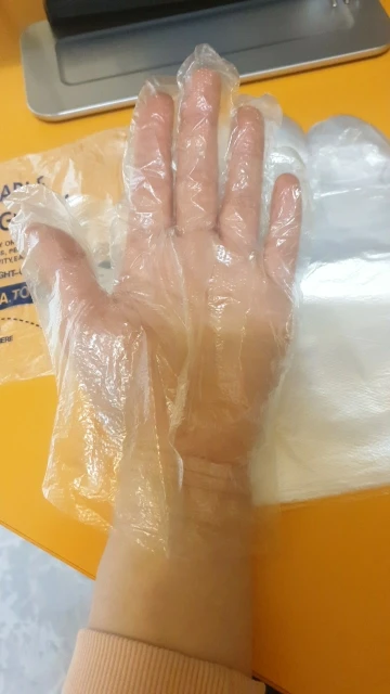 Тонкие пластиковые перчатки, такие как те, которые они помещают в супермаркеты, чтобы взять фрукты. Как раз то, что я искал.