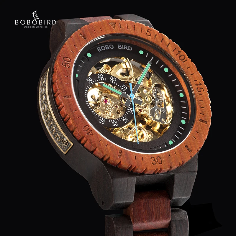 Деревянные Механические часы BOBO BIRD, мужские Роскошные автоматич...