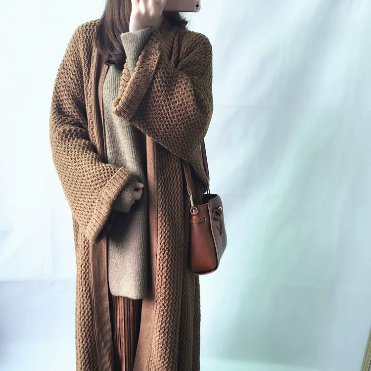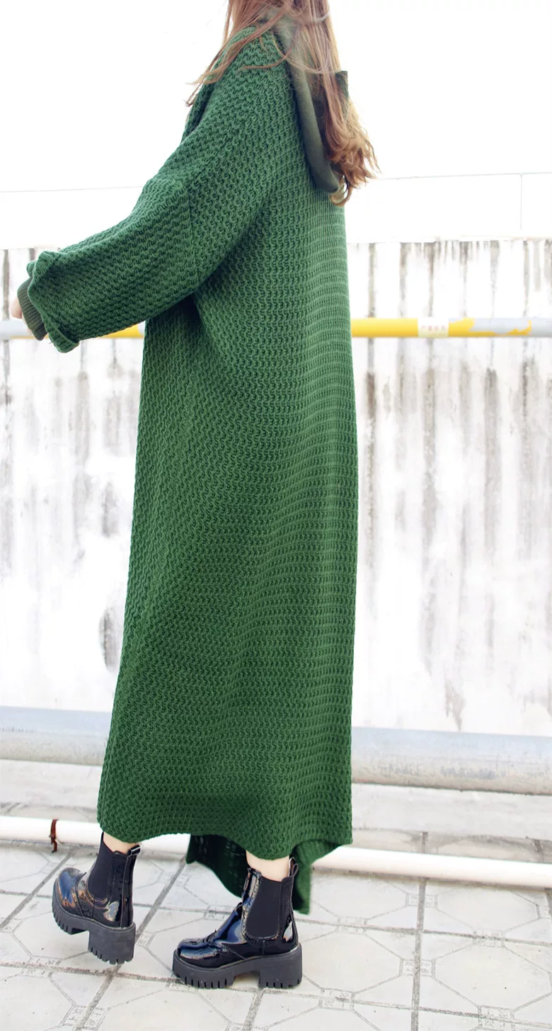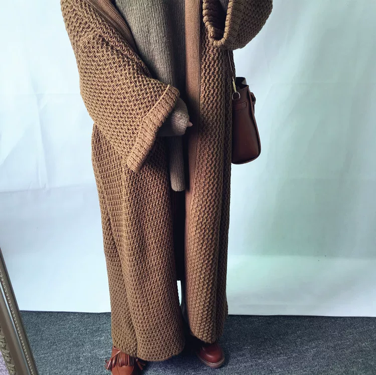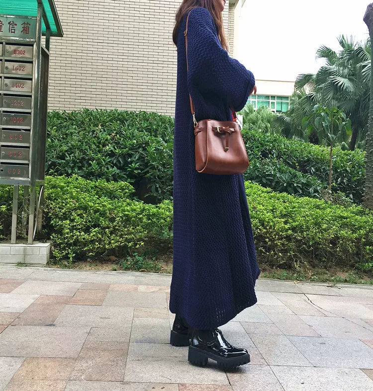 Бесплатная доставка, новинка 2021, модные женские длинные платья-свитера до середины икры, Тренч размера плюс, теплые свободные свитера с длинным рукавом