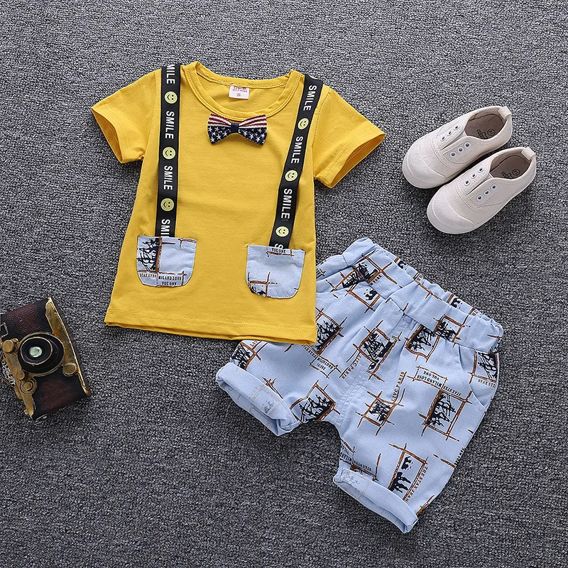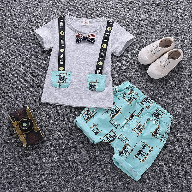 Новая летняя детская одежда для мальчиков и девочек модный детский хлопковый костюм футболка с рисунком для малышей и шорты Детский Повседневный Спортивный костюм из 2 предметов