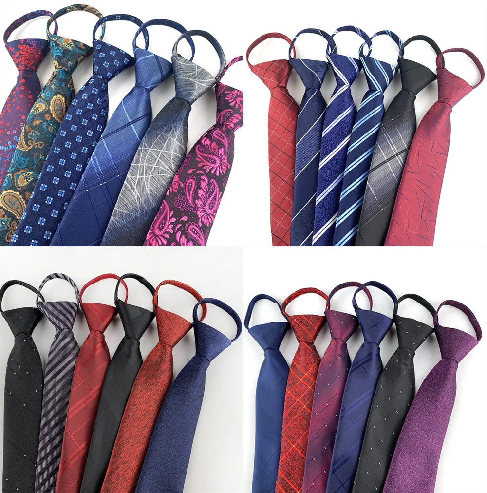 Мужские Узкие галстуки на молнии, 7 см, деловая Повседневная серия, ленивый галстук, черный, красный галстук для мужчин, полосатый галстук, однотонные Галстуки