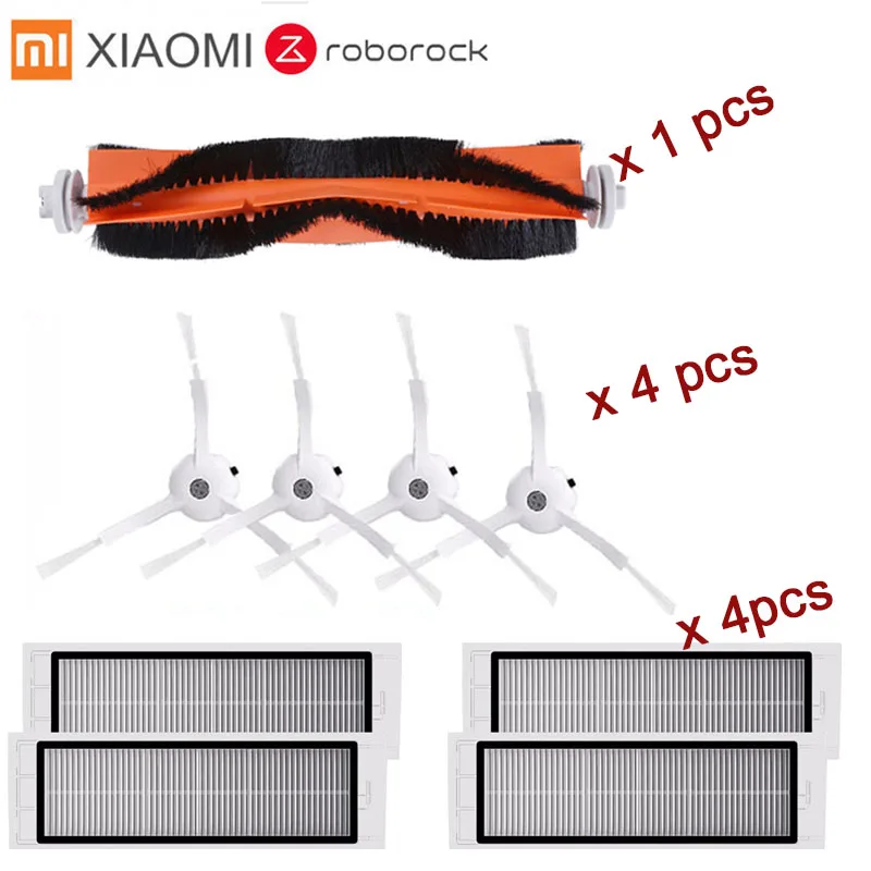 Вакуумные детали, 1 * основная щетка + 4 * боковая щетка + 4 * HEPA-фильтр, подходит для Xiaomi Mi Robot Xiaomi Vacuum 2 xiaomi Roborock s50