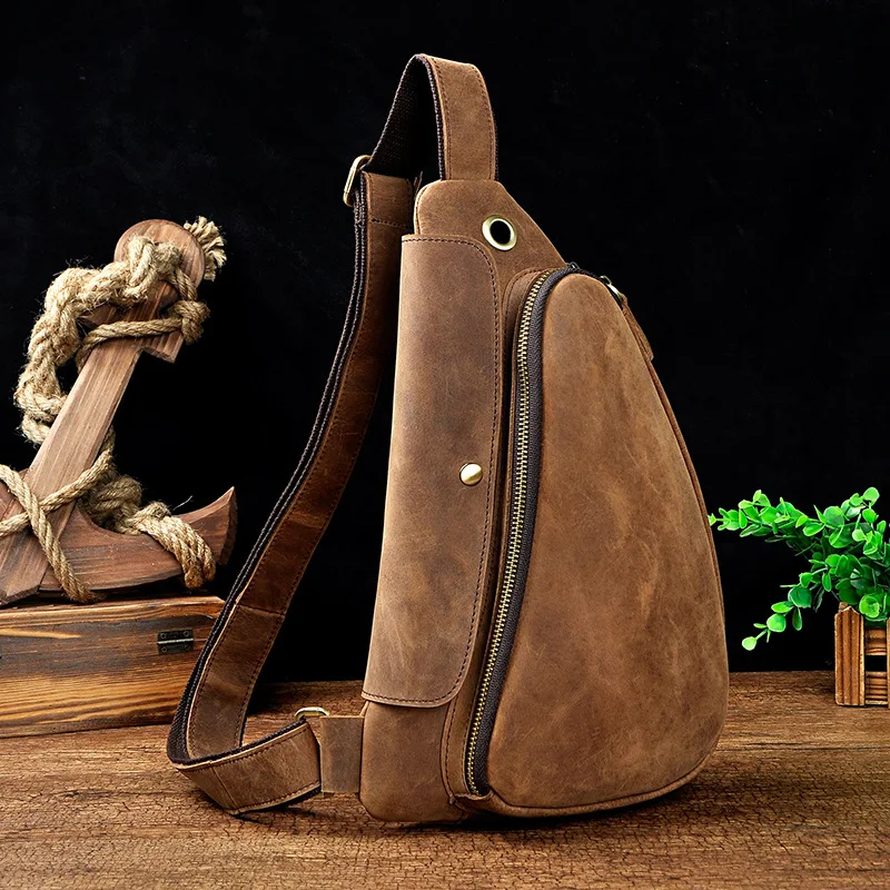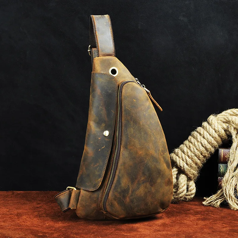 Мужской повседневный рюкзак на одно плечо, винтажная крутая сумка-мессенджер из натуральной кожи Крейзи Хорс, дорожные нагрудные сумки из воловьей кожи