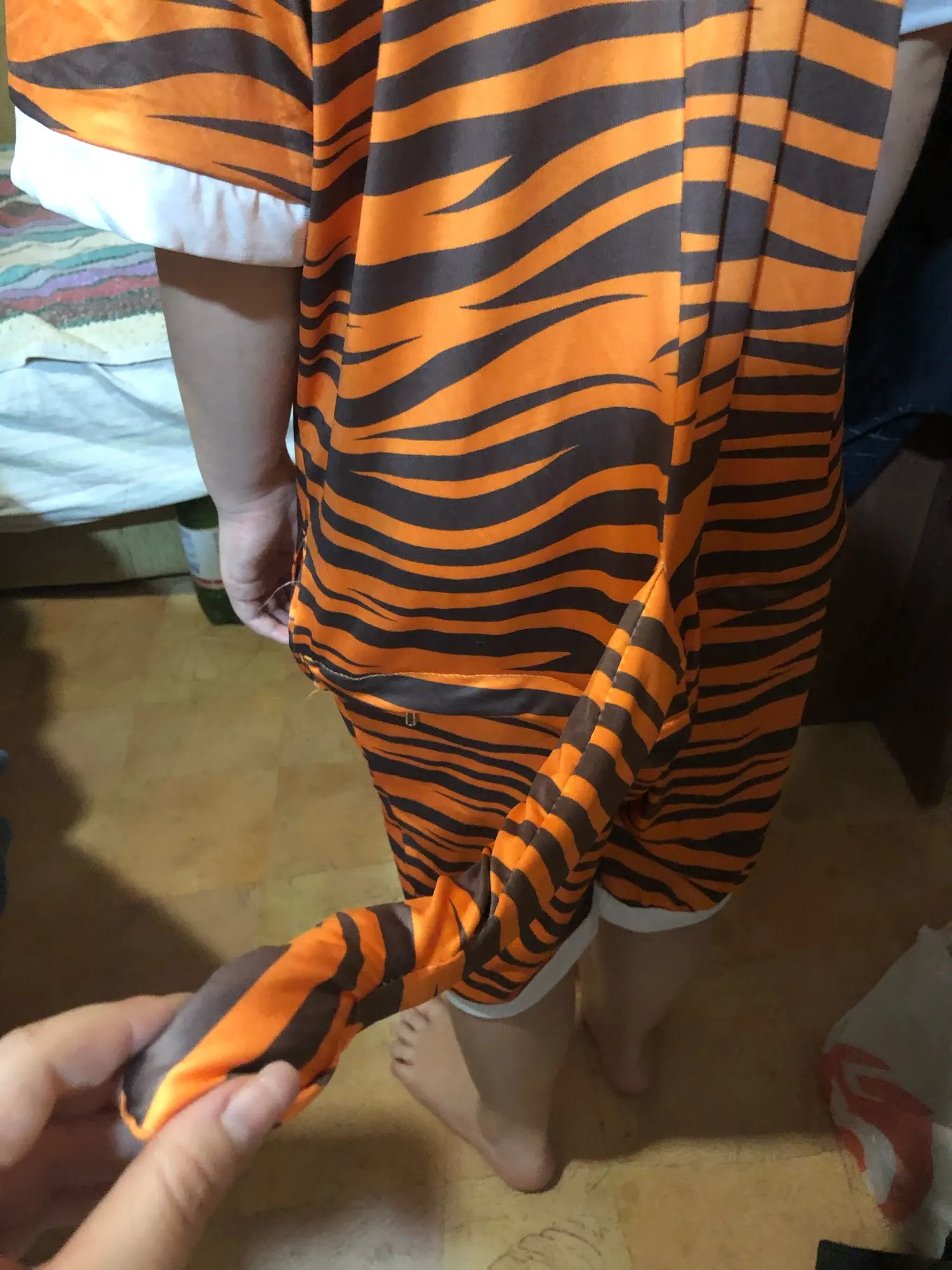 Пижама с тигром прибыла вовремя и в прекрасном состоянии. Они очень красиво сидят и выглядят потрясающе-просто на фотографиях. Большое вам спасибо! :)