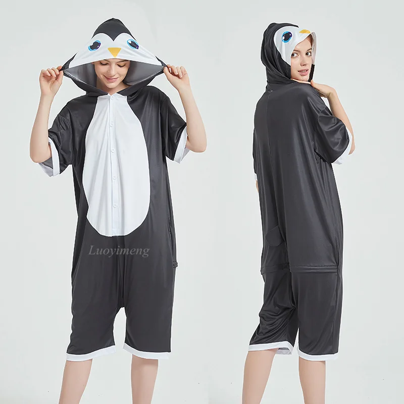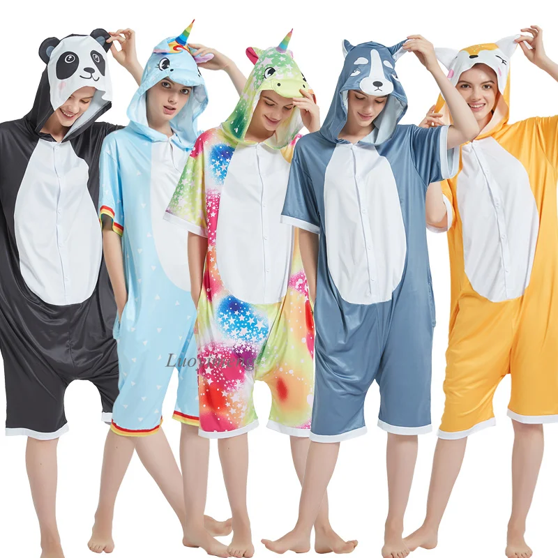 Летняя Пижама-кигуруми с мультяшным рисунком, пижама в виде животных, женские комбинезоны в виде единорога для взрослых, одежда для сна, комбинезон с капюшоном, пижама в виде кошки, лисы, панды