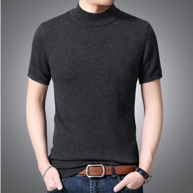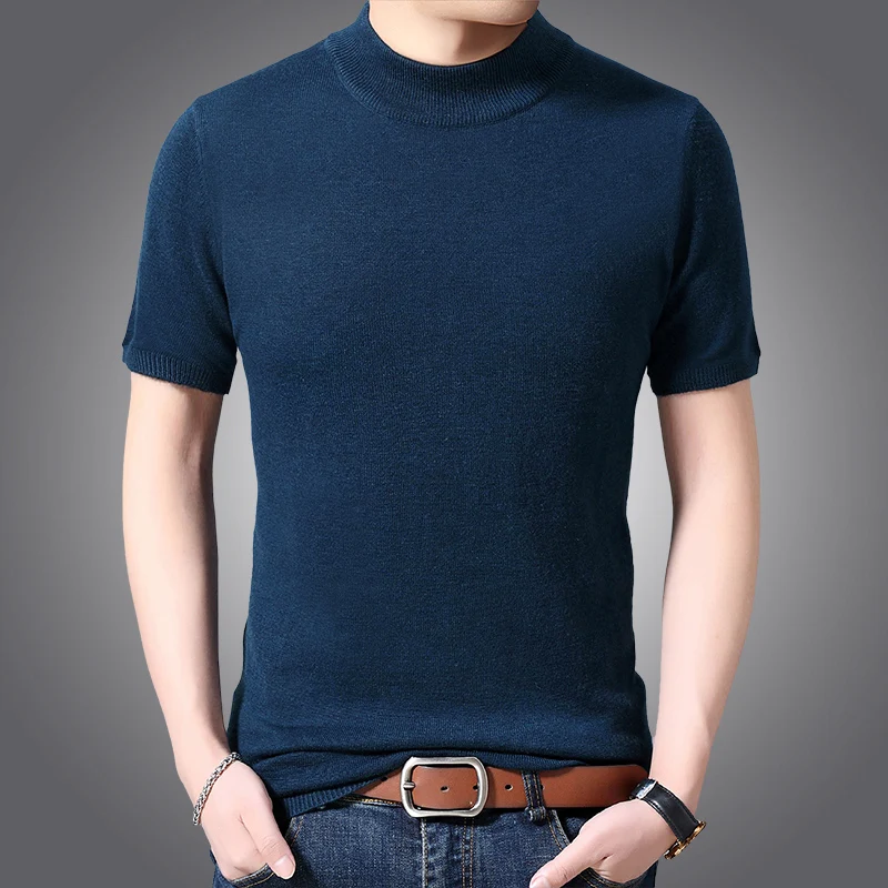 Мужская шерстяная рубашка, свитер с коротким рукавом, Высококачественная пикантная мужская приталенная рубашка, вязаные шерстяные рубашки