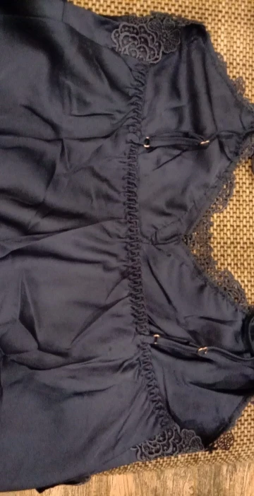 Качественный товар, ткань мягкая, приятная к телу, размер XL на российский 46/48, без запаха, нитки не торчат. На топе и сорочке по спине проходит резинка. Халат внутри на дополнительных завязках. Цвет соответствует фотографии. Доставка до Новосибирска 14 дней.