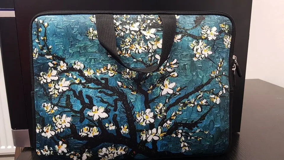 Очень хороший тонкий пенопласт, конечно, но достаточно, чтобы защитить 15-дюймовый ноутбук. Размеры 34x26 см, ручки удобны для транспортировки. Широкий выбор мотивов, чтобы найти свое счастье!