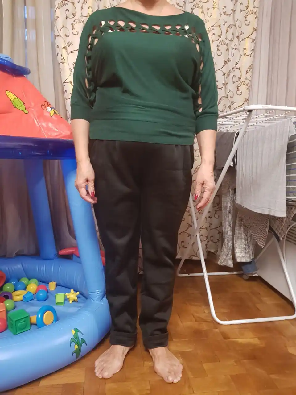 Заказ прибыл в течение 17 дней. Штаны не очень высокие, я 4/5 Но приятный материал, легко надевать и толстый, приятный цвет и небольшие карманы хорошо сшиты.
