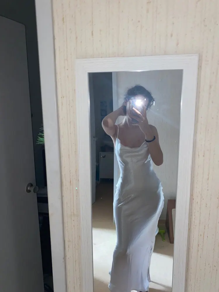 Проучила через месяц, к свадьбе не успело, но хоть на юбилее звездой побуду )) на рост 183см, платье до косточки, чуть не хватает до полной длины, мне такая не подходит , поэтому подрезала. Платье очень женственное, в нем идёшь и прям чувствуешь себя секси. На пар.98-75-98 размер Л как раз, но наклоняться лучше аккуратней, могут прелести и выглянуть) у меня 3