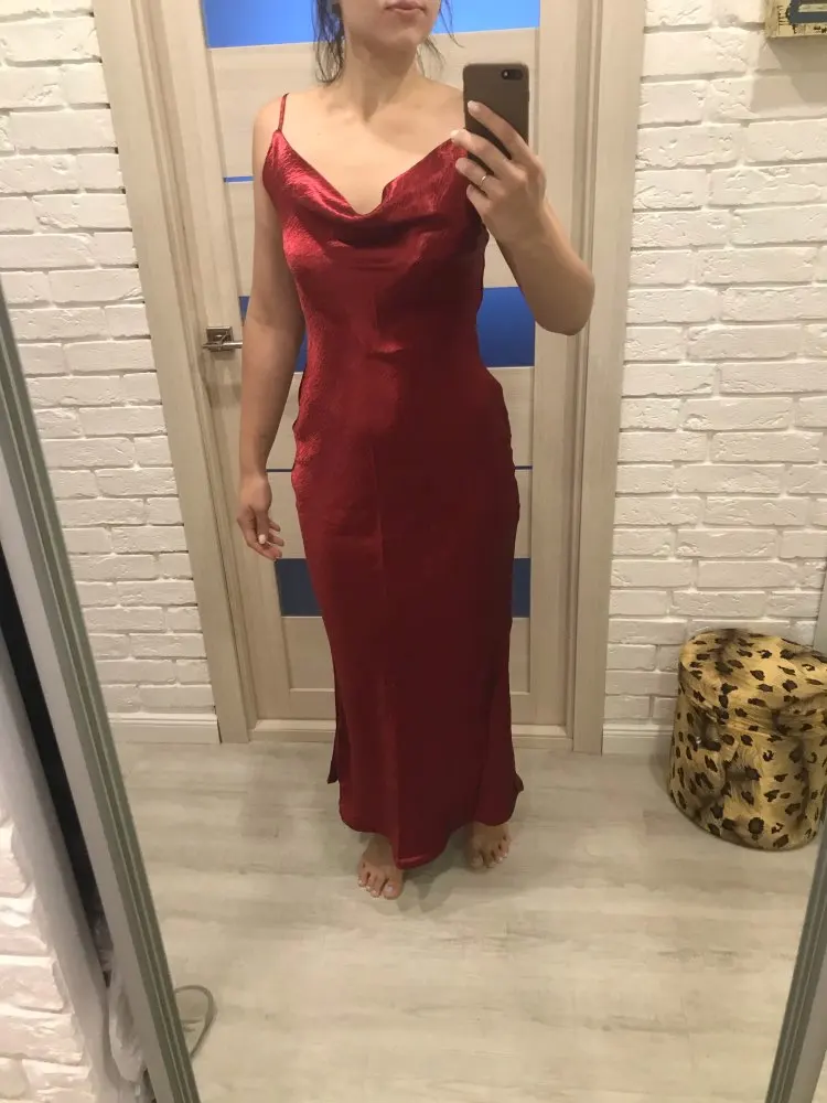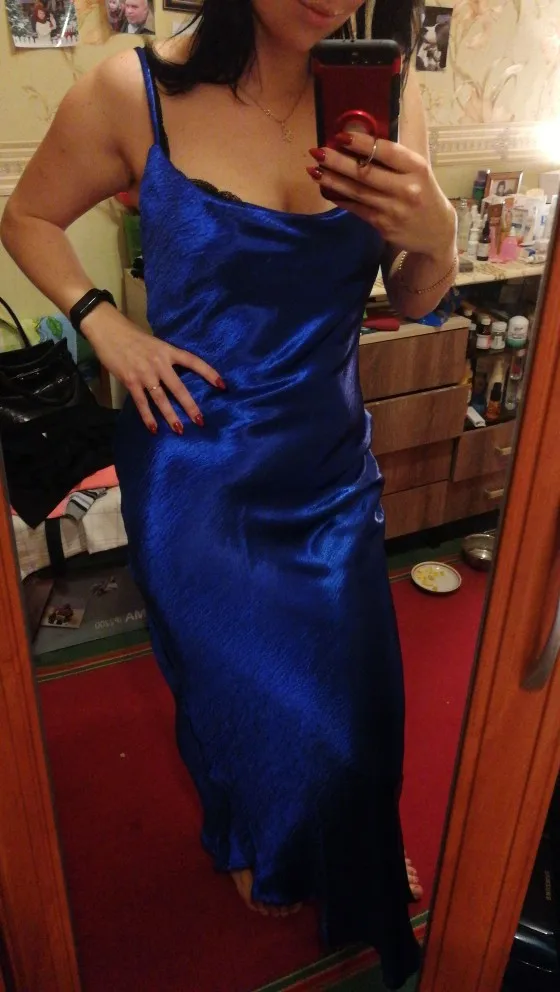 Платье нереальное. Не висит, подчеркивает талию и бедра. Я худая, поэтому на спине образуется большая складка, грудь тоже надо как-то закрепить,длину уменьшить (рост 165, вес 45). Расстроила доставка. Не заказала у этого продавца другое, так как на нем не было отметки plus, если бы знала, что доставка займёт 22 дня, заказала бы то. Но все равно, платье делает из вас золотую статуэтку. Оно не будет долговечным, так как зацепки быстро ставятся, так с любым платьем из подобного материала. Материал, кстати, очень плотный, дорогой. Подытожу: платье нужно подгонять под фигуру в груди, зацепок будет много, но оно невероятно красивого цвета, материала и делает их вас богиню олимпа