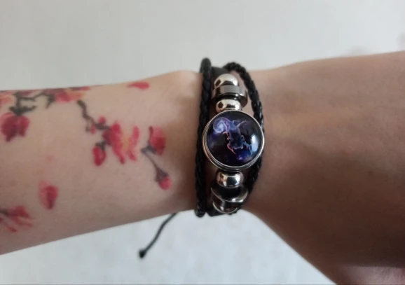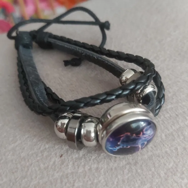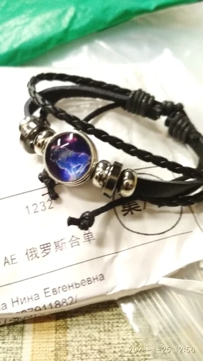 Кожаный браслет 12 созвездий Знак зодиака стеклянный кабошон ручной...