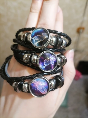Браслет женский, мужской, черный, 12 созвездий, стеклянный купольны...