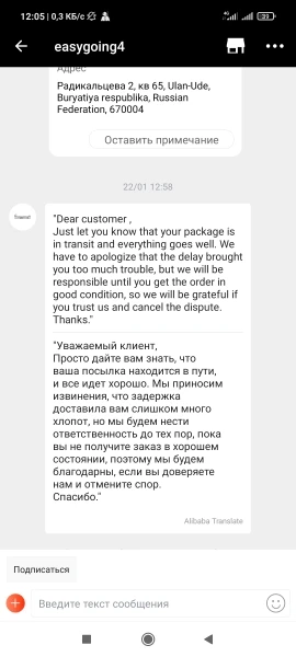 посылку так и не получил!!! продавец тянул время, чтобы истёк срок спора!!! заказал почти 3 месяца назад!!! продавец кормил обеспечениями что посылка на границе, с того момента прошло уже полтора месяца, а посылки так и нету!! не рекомендую этого продавца!!