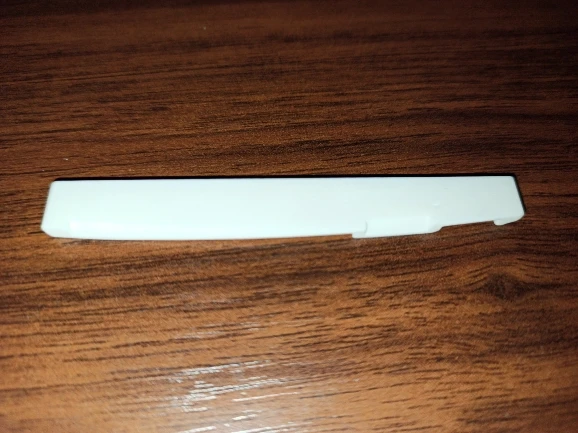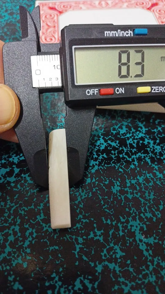 Верхний порожек подошел идеально. У меня акустическая гитара с узким грифом, как у электрогитары. На широкий гриф верхний порожек будет узким. Верхний порожек не подтачивал не по высоте, не по глубине бороздок под струны. Нижний порожек подтачивал по высоте для уменьшения высоты струн над грифом. Точил на гриндере, т.к. стачивать пришлось примерно 2,5-3 мм. Материал нижнего порожка очень хороший, твердый, наверное точно кость, т.к. при точении (при нагреве) шел запах, не похожий на пластмассу. Спасибо продавцу.