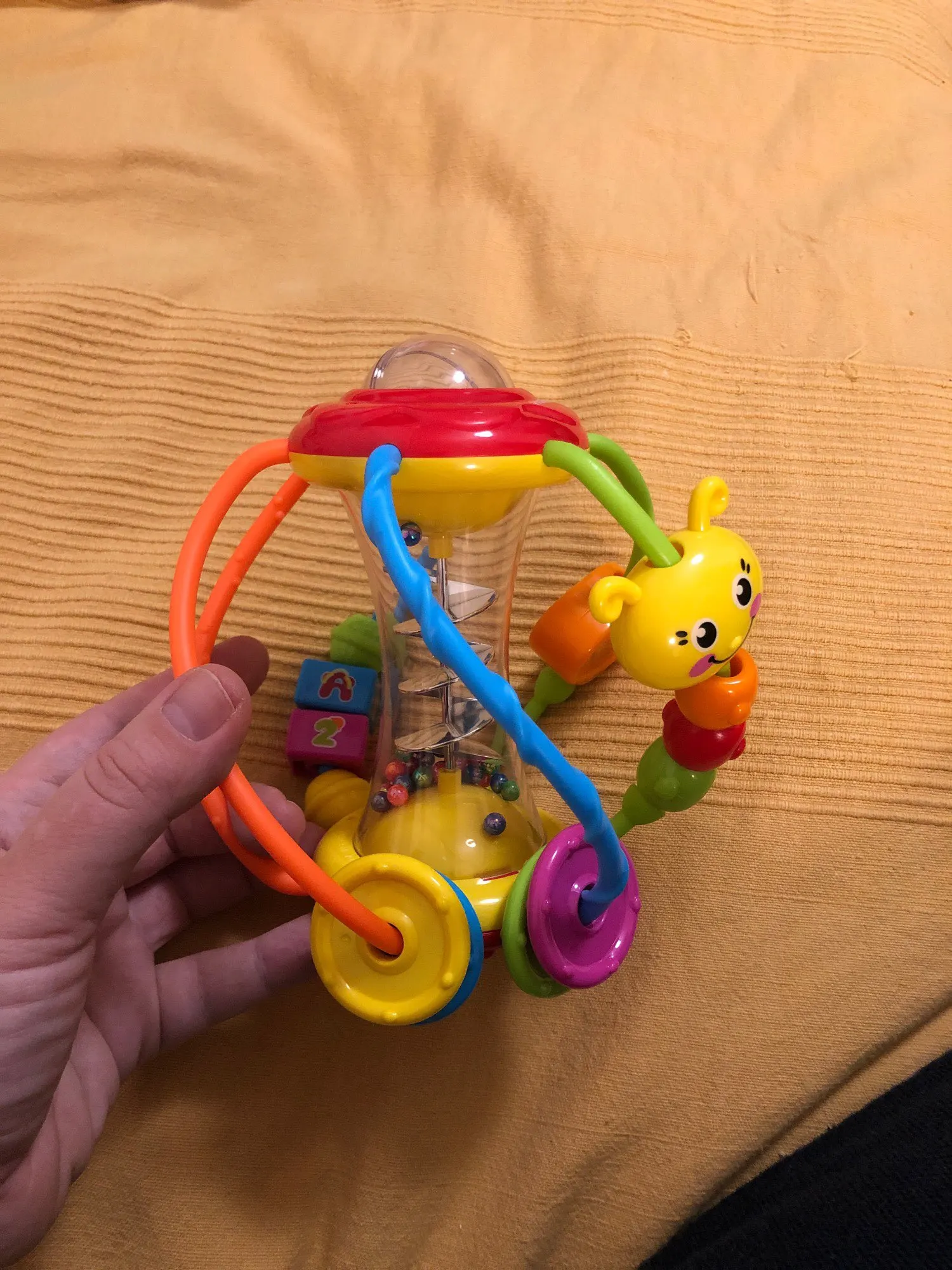 Игрушка,как на фото, но я ожидала большего. Ну такая обычная китайская пластиковая игрушка ядовитых цветов. Это мое мнение, возможно малышке понравится.
