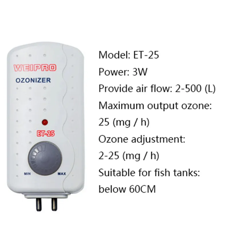 Регулируемый аквариумный озонатор генератор озона для аквариума стерилизация озона WEIPRO ET-25 ET-50 ET-100 ET-200