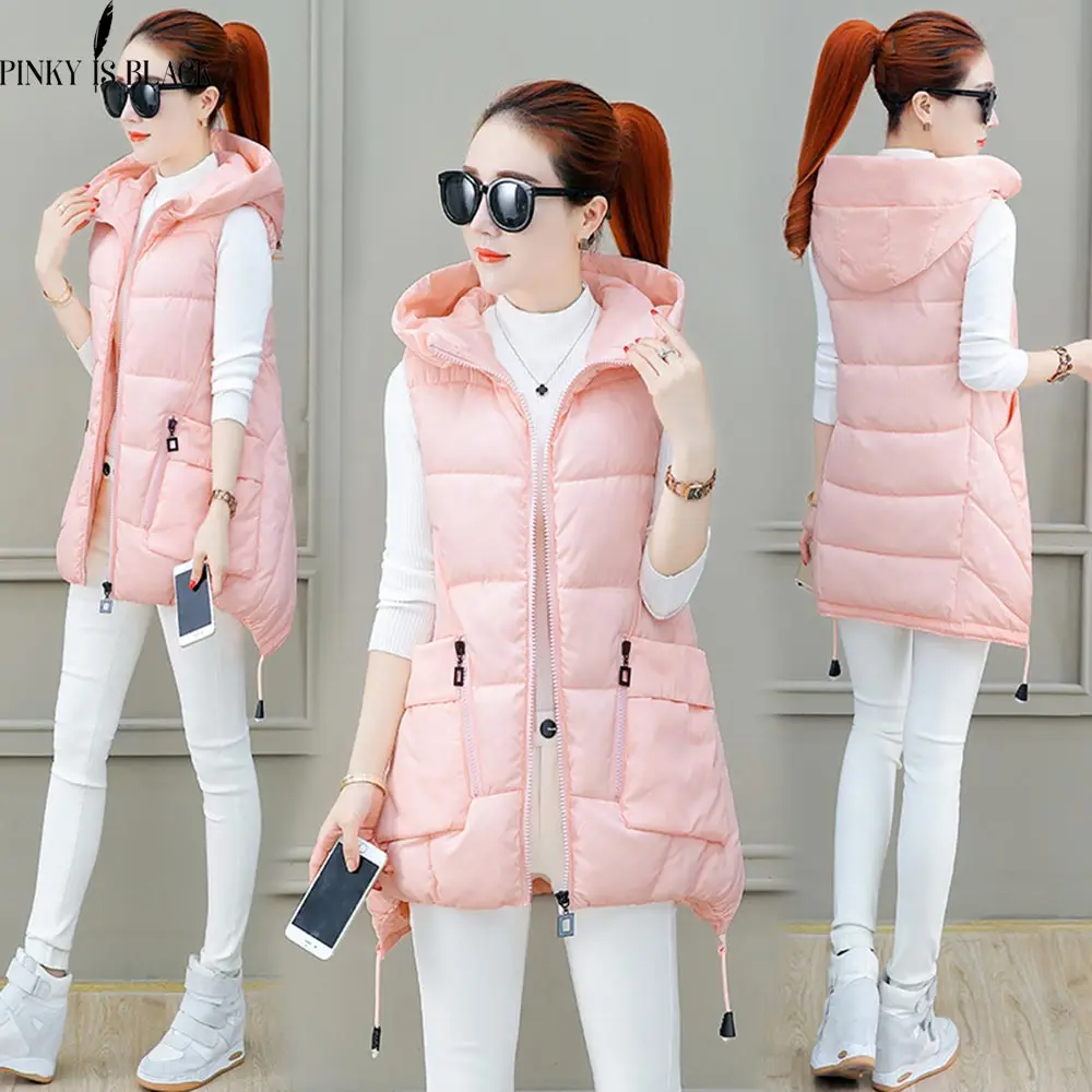 Новинка 2020, зимний женский жилет PinkyIsBlack, повседневный осенне-зимний жилет без рукавов, длинный теплый топ с капюшоном и хлопковой подкладкой, жилет, куртка