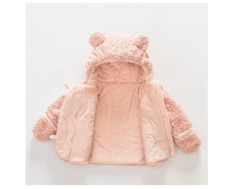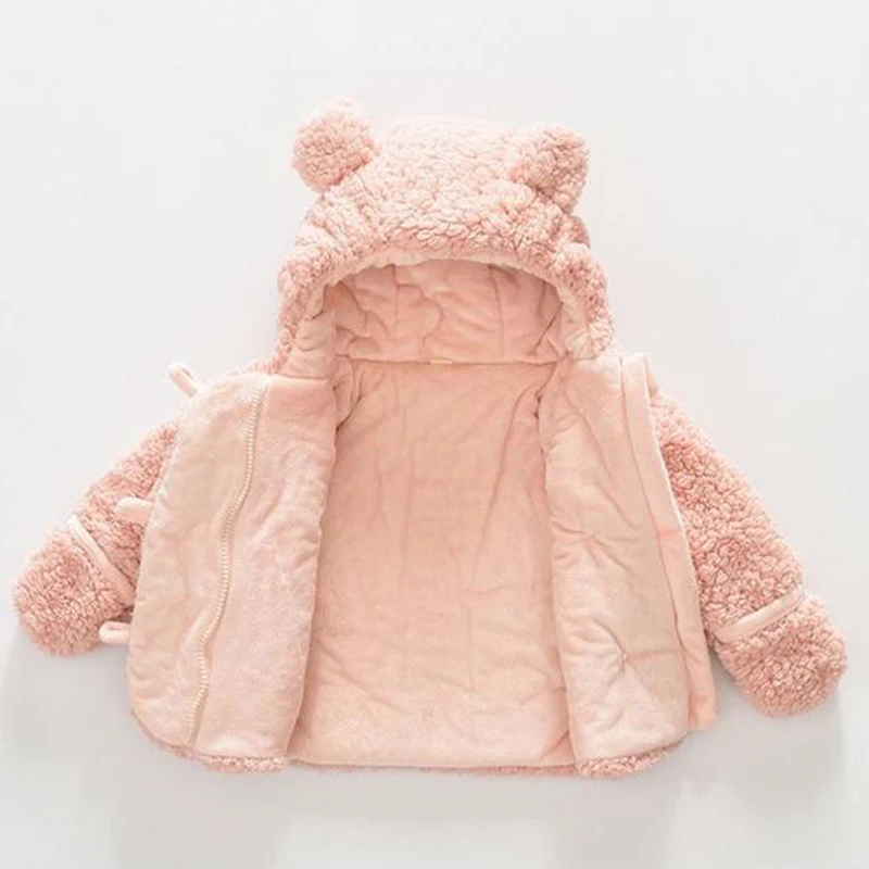 Осень 2019, толстовка с милым медведем, утепленная, теплая, для малышей, детское шерстяное пальто, бархатный топ для девочек, зимнее пальто, толстовка для маленьких мальчиков