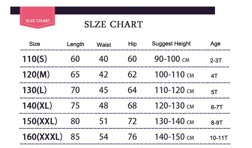6 разных размеров от 110 до 160, для девочек 3-11 лет