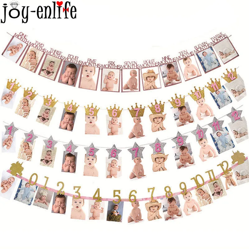 1 компл. Первая день рождения для мальчиков и девочек вечевечерние 12 месяцев фоторамка баннер для детского душа Бумажная гирлянда 1-й День рождения вечевечерние украшения принадлежности