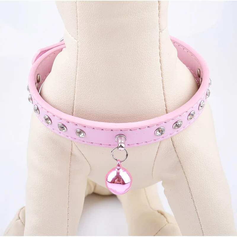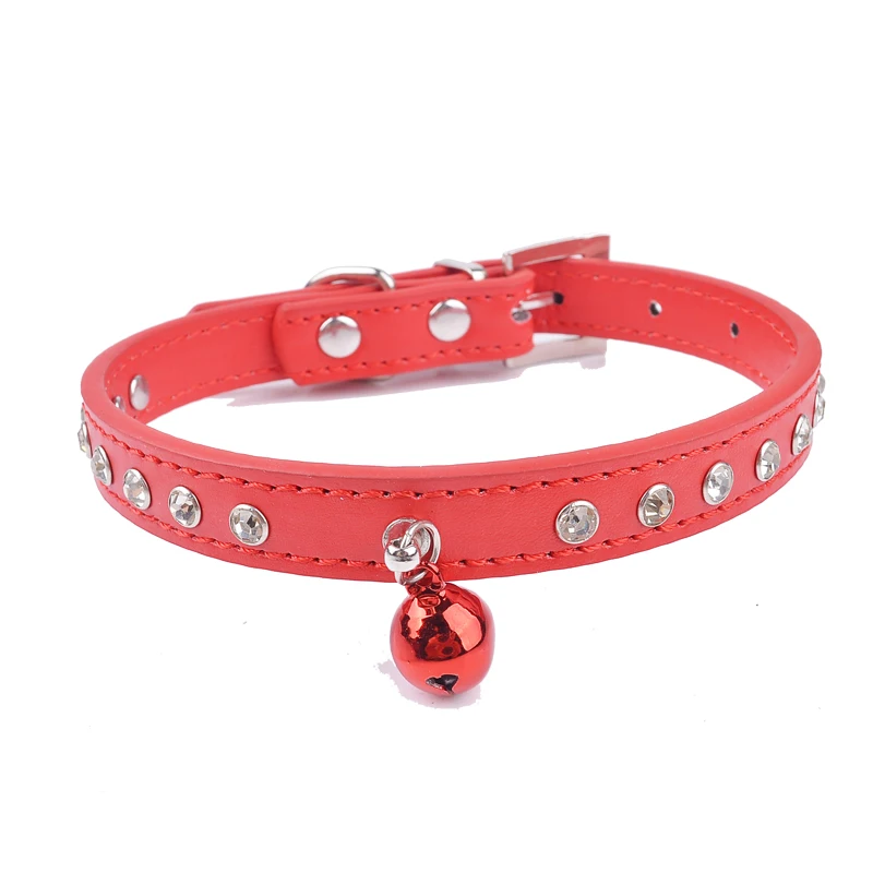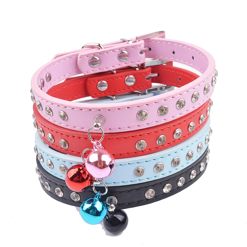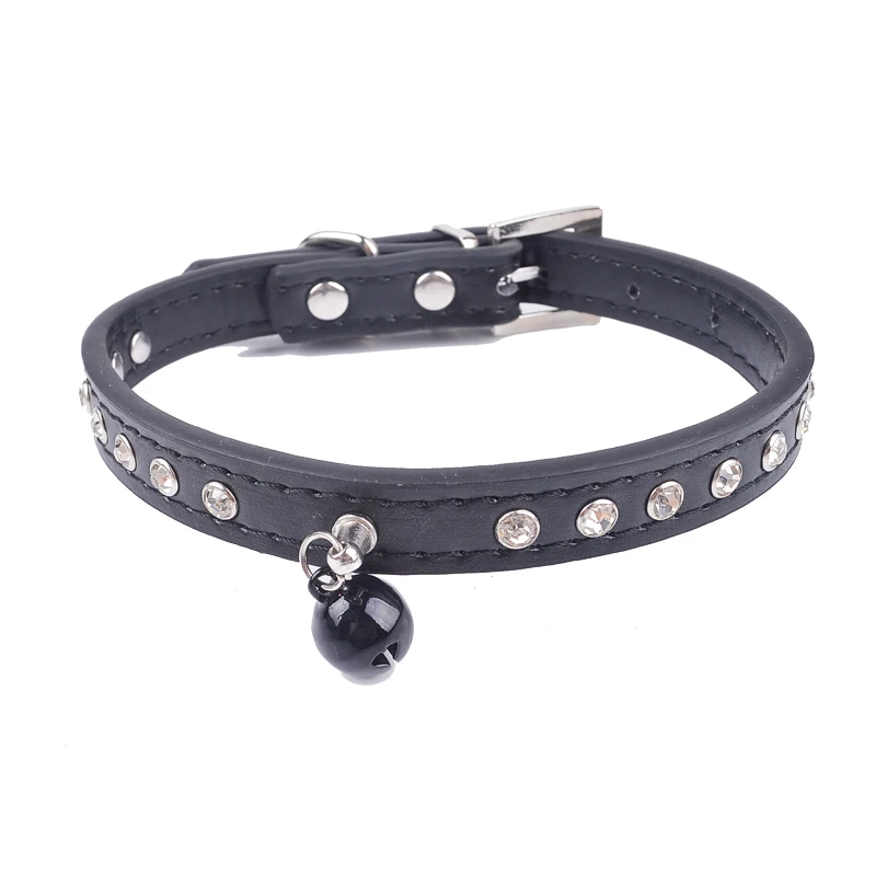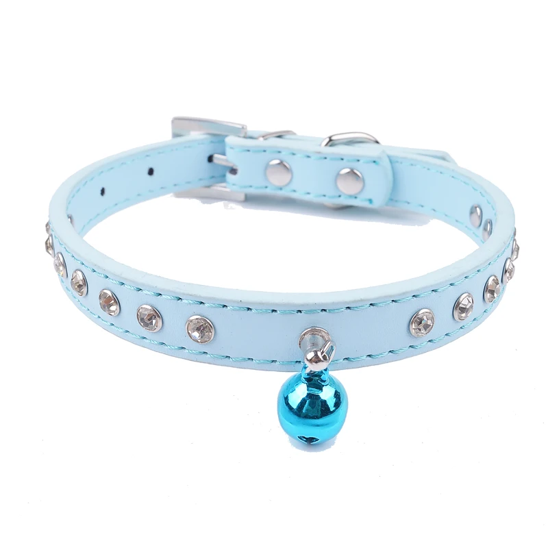 ошейник для кошек ошейники для кота поводок колокол кошки Стразы с заклепками из искусственной кожи безопасности Регулируемый отколовшаяся маленький щенок ошейники для домашних животных