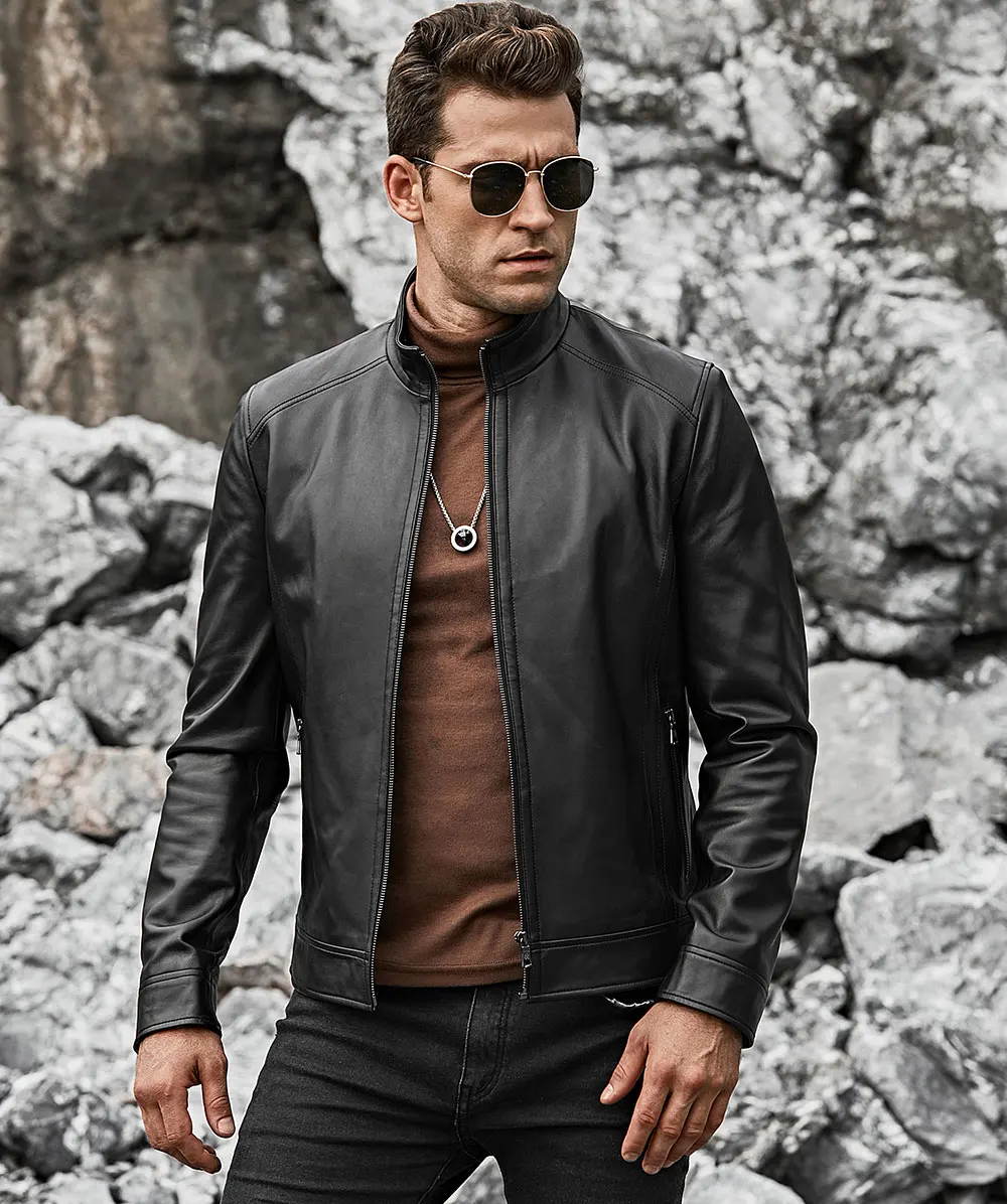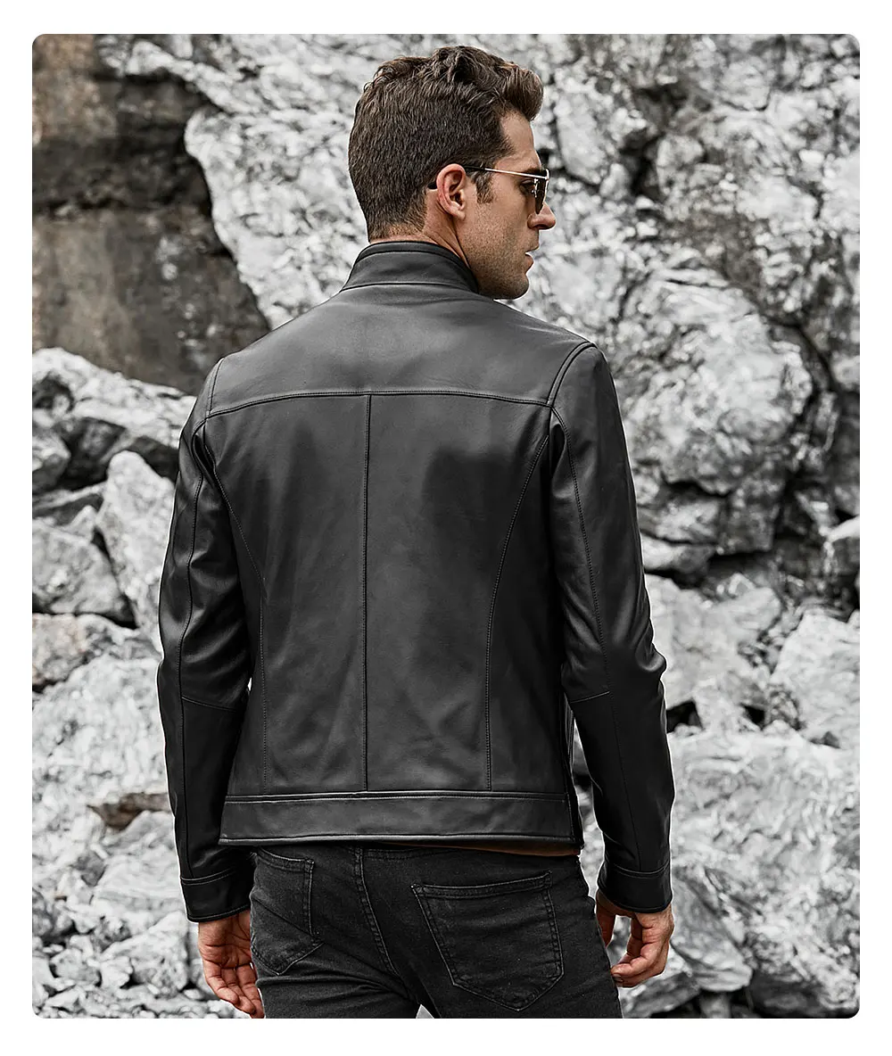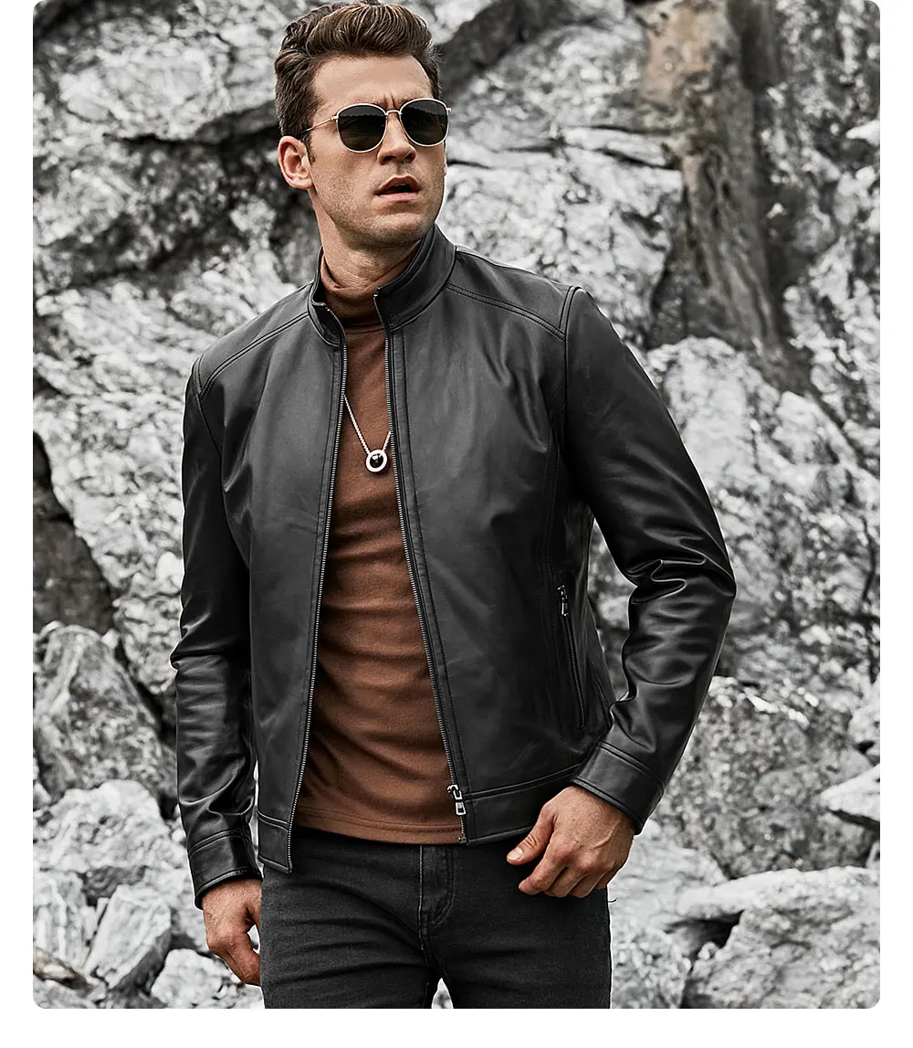 Kожаная куртка мужская FLAVOR, черный жакет из натуральной овечьей кожи, с воротником стойка, приталенный силуэт, теплая байкерская куртка, кожаный пиджак на весну-осень 2019