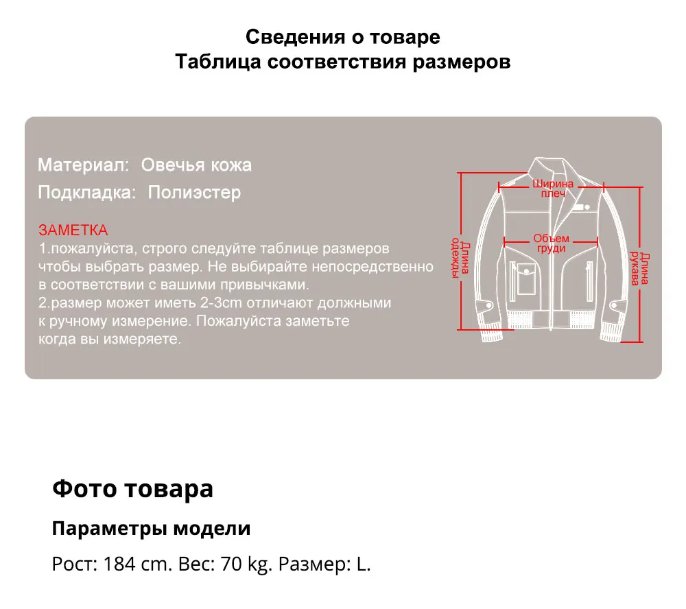 Kожаная куртка мужская пальто из настоящей шкуры ягненка FLAVOR, те...