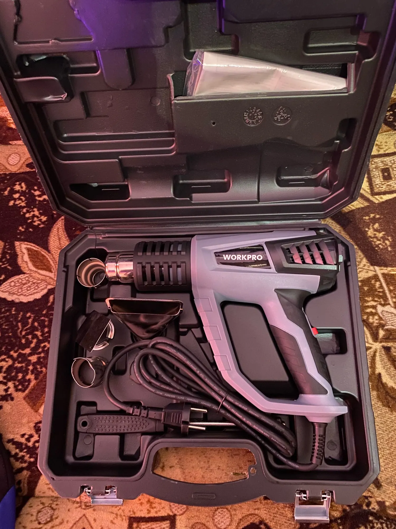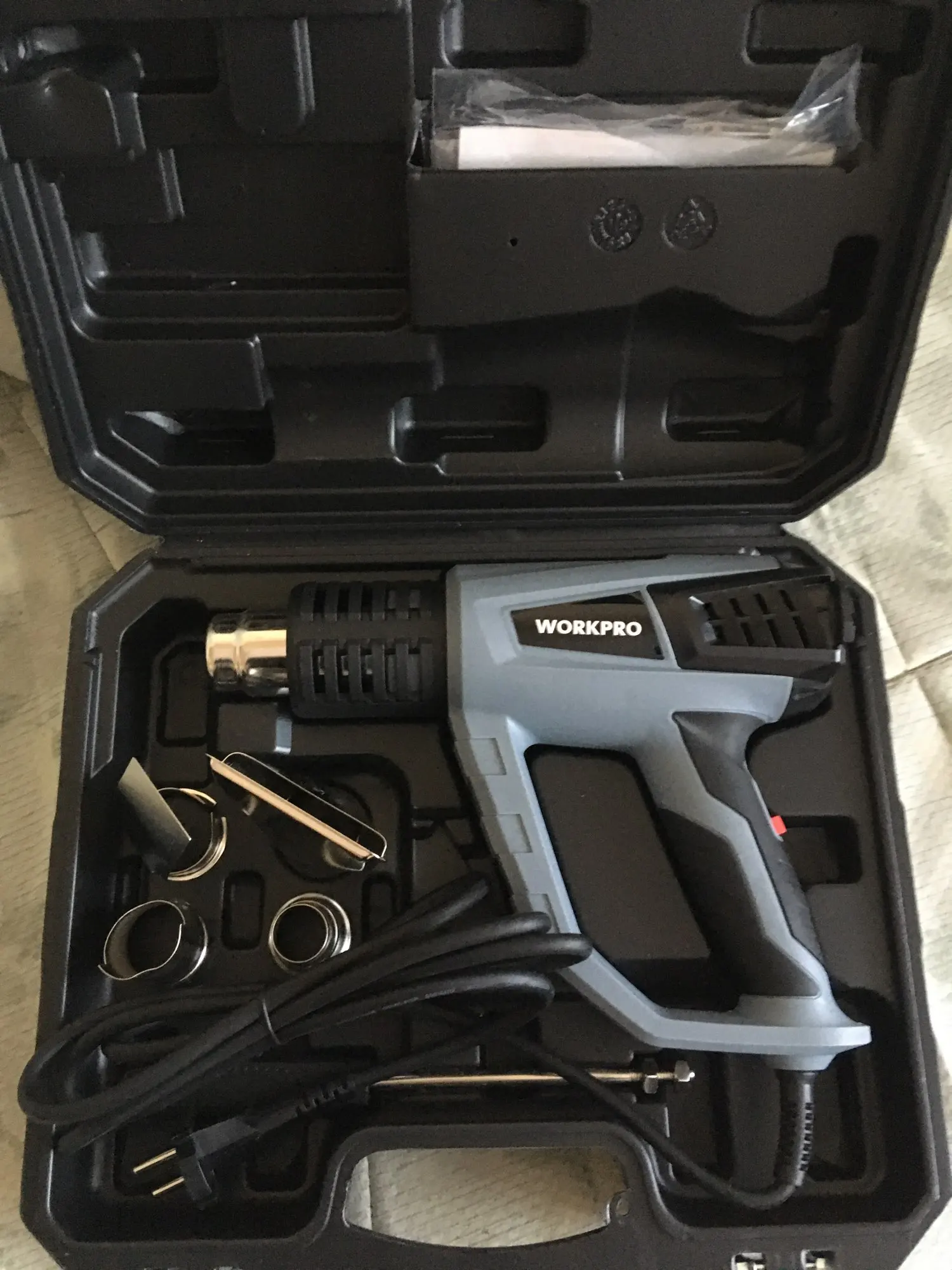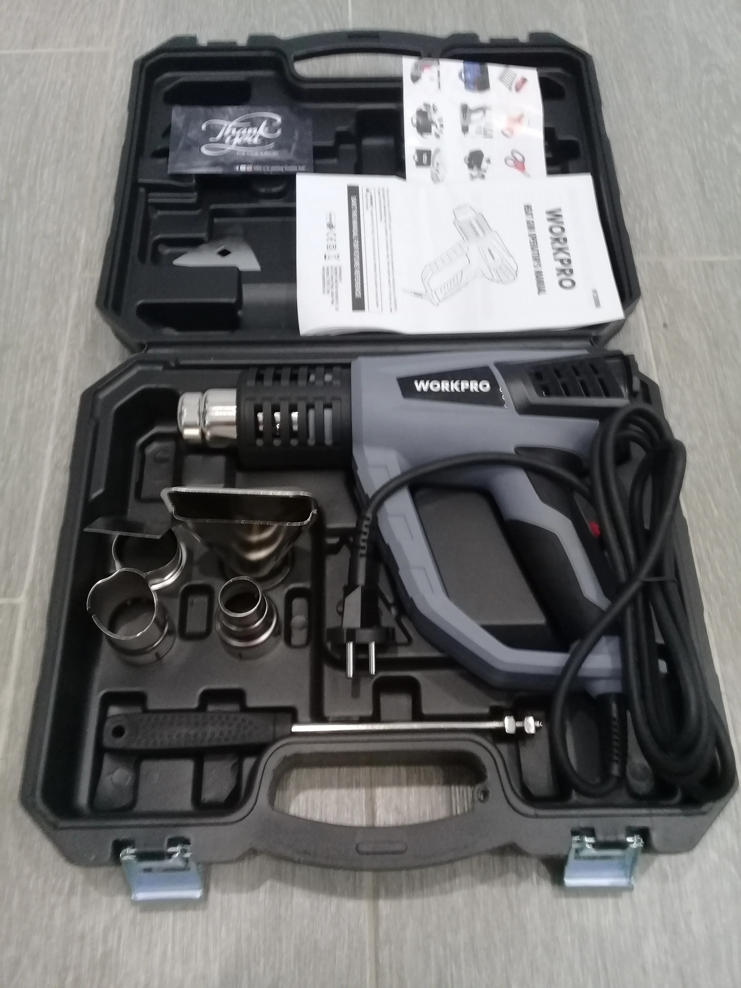 Тепловая пушка WORKPRO, 220 В, 2000 Вт, промышленная электрическая тепловая пушка, терморегулятор, термоусадочная упаковка, нагреватель, пластиковая коробка