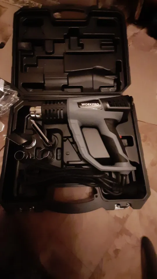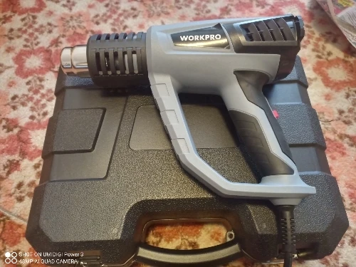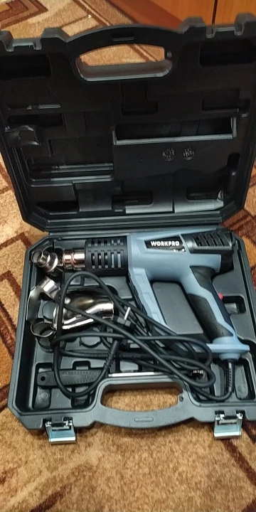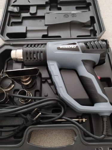 Для непродолжительных простых бытовых работ подойдёт. При первом включении запах обгорающего материала, через минуту проходит. Вторая скорость греет сильно, но поток воздуха самый слыбый из всех (долго не поработаешь, явно сгорит), как типа первая скорость на фене для волос, медленно. Курок переключения не много болтается и создает звук побрякушки. Кажется массивным, хотя легкий. Мне кажется можно было бы размер поменьше сделать, но это уже индивидуальная придирка.